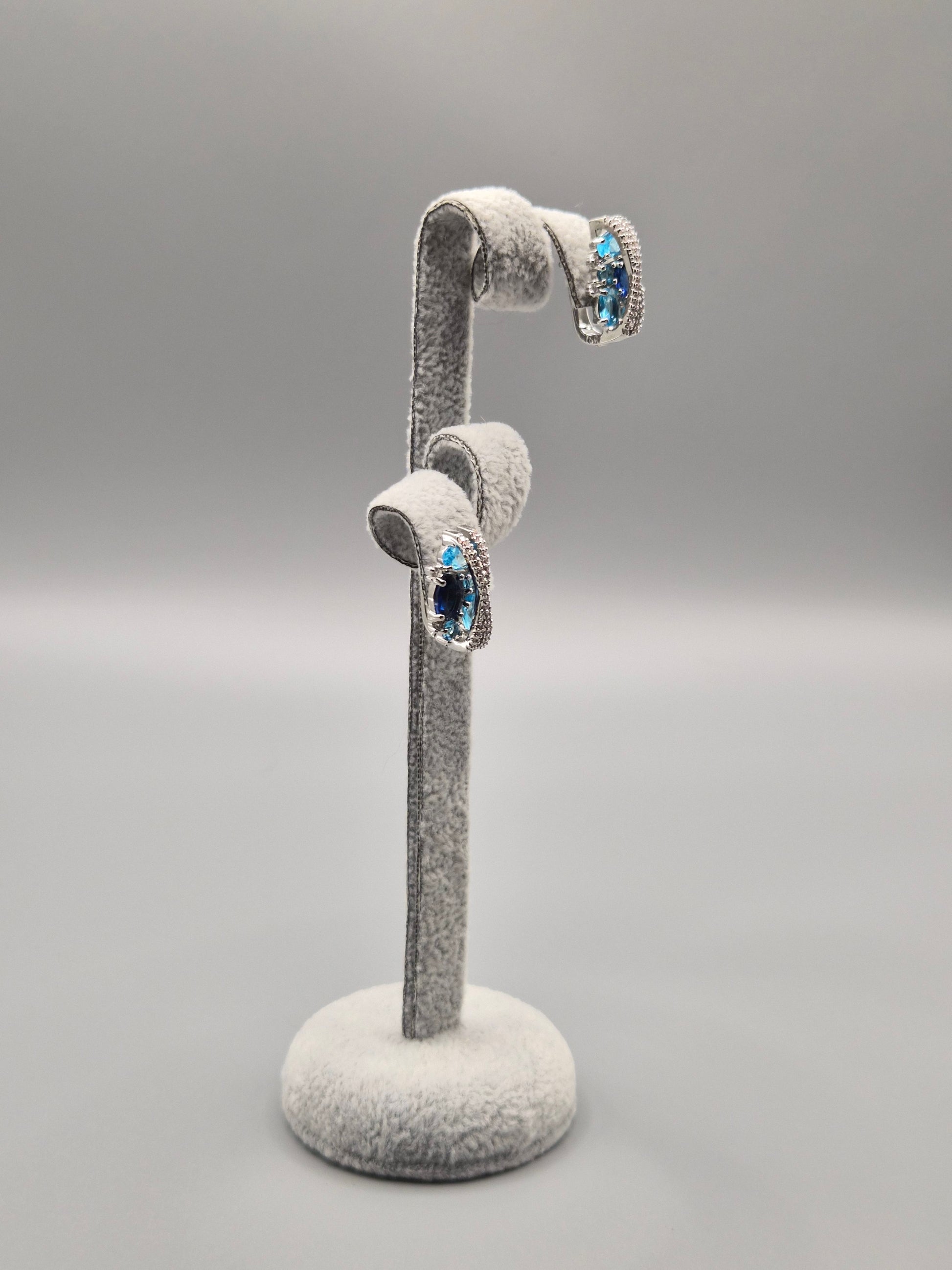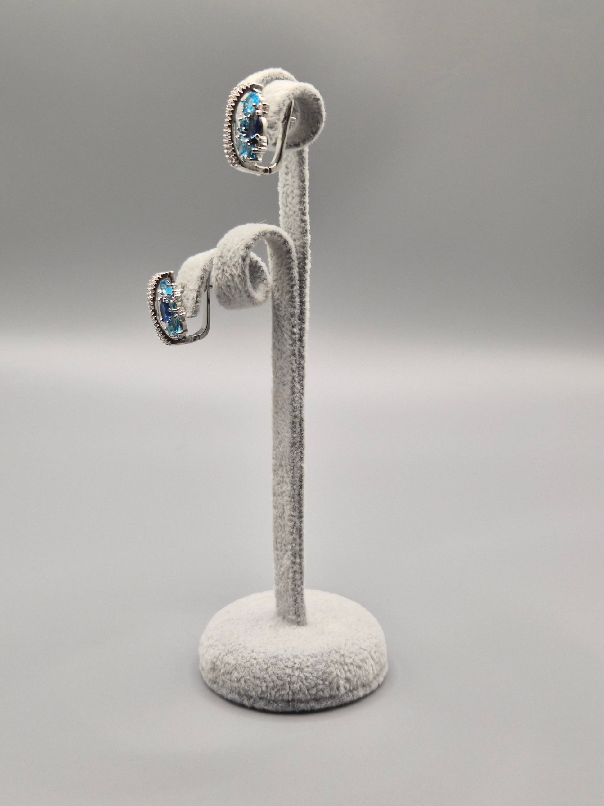 Blue, Aqua & Cubic Zirconia Cluster Stud Earrings