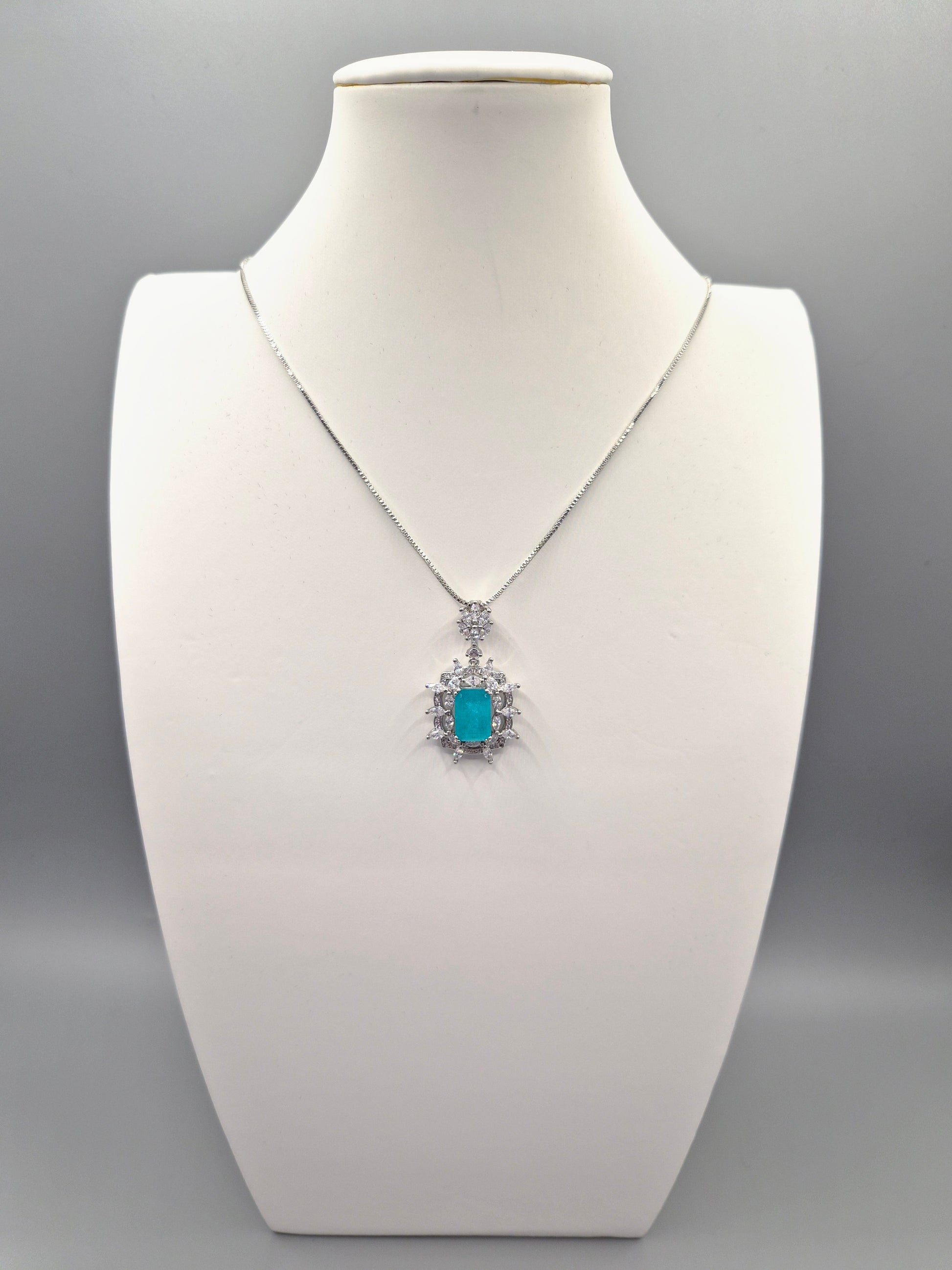 Blue Emerald Cut Centre Stone Cubic Zirconia Pendant