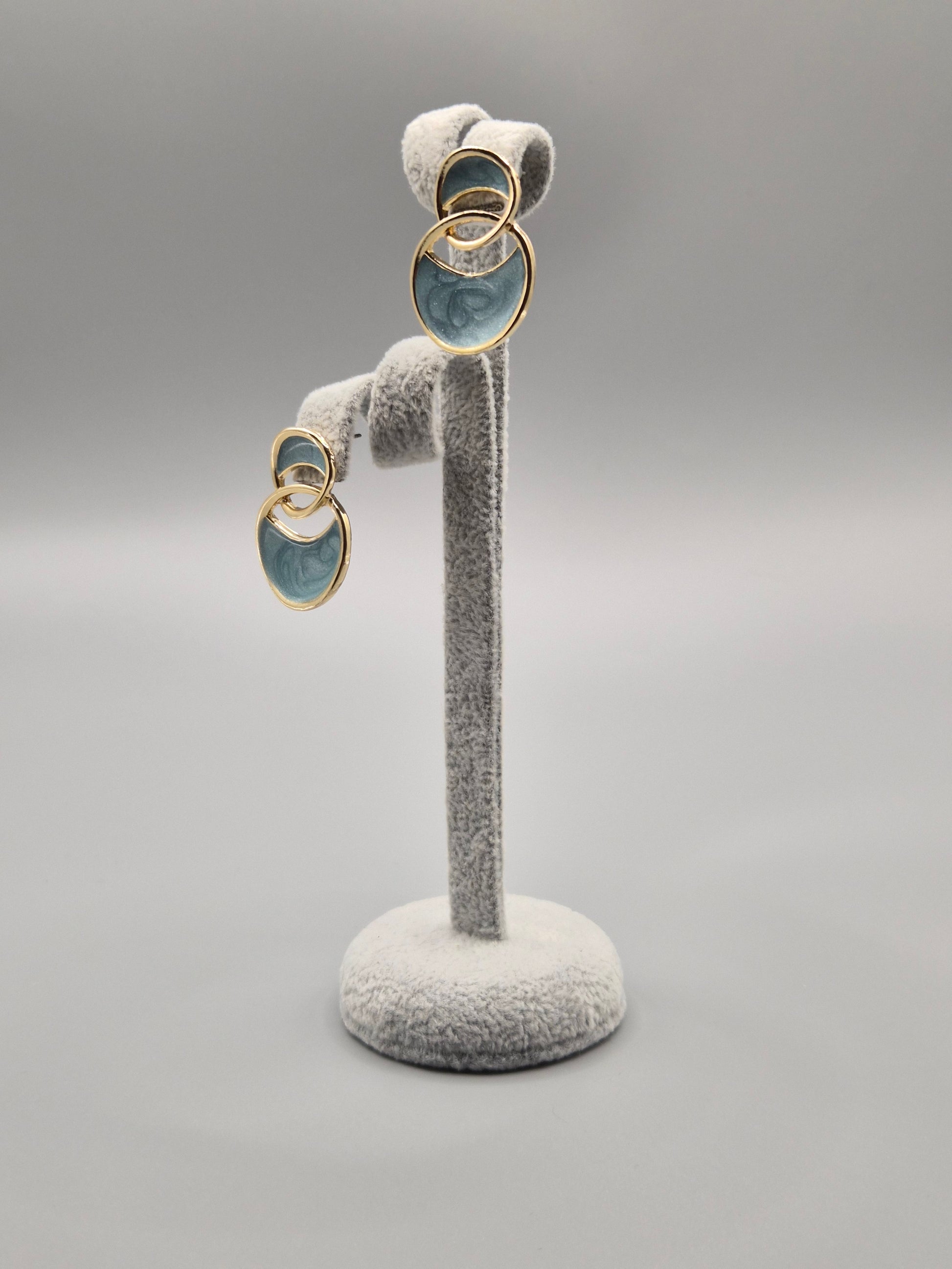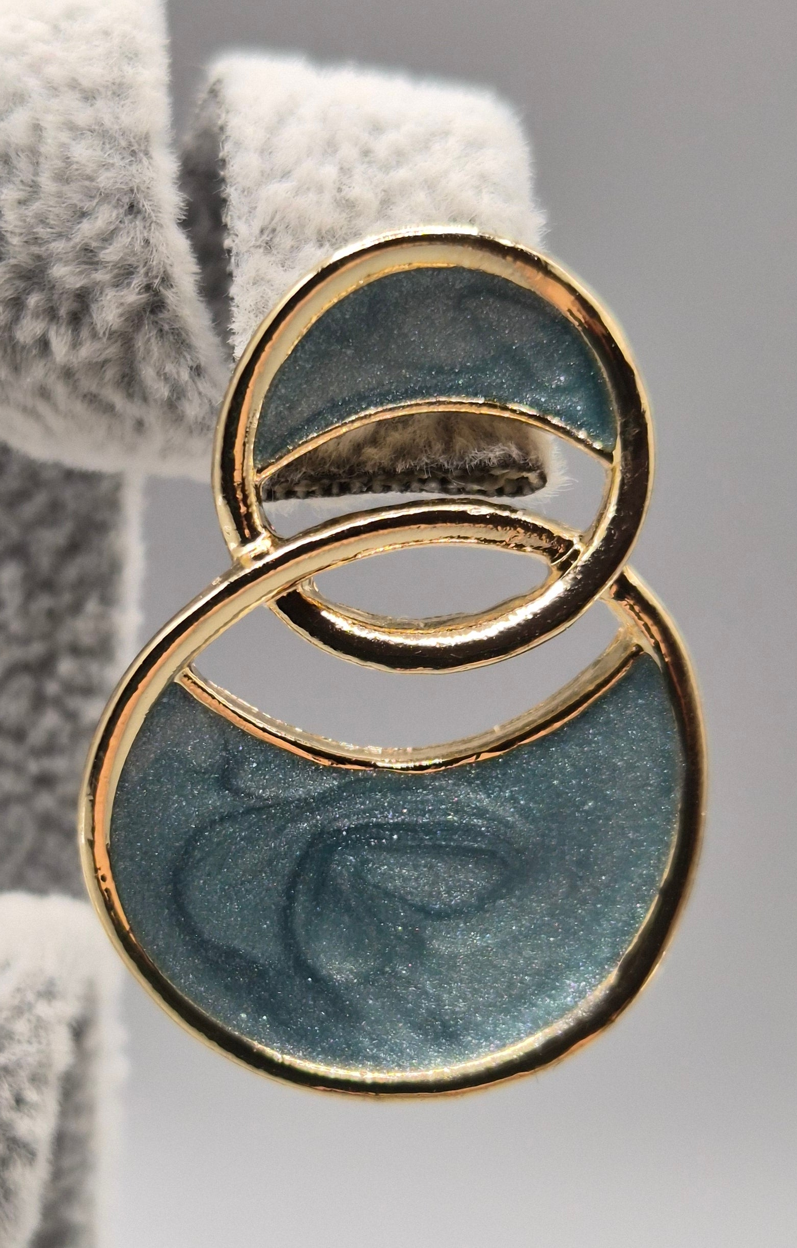 Blue Turquoise Enamelled Double Gold Ring Stud Earrings