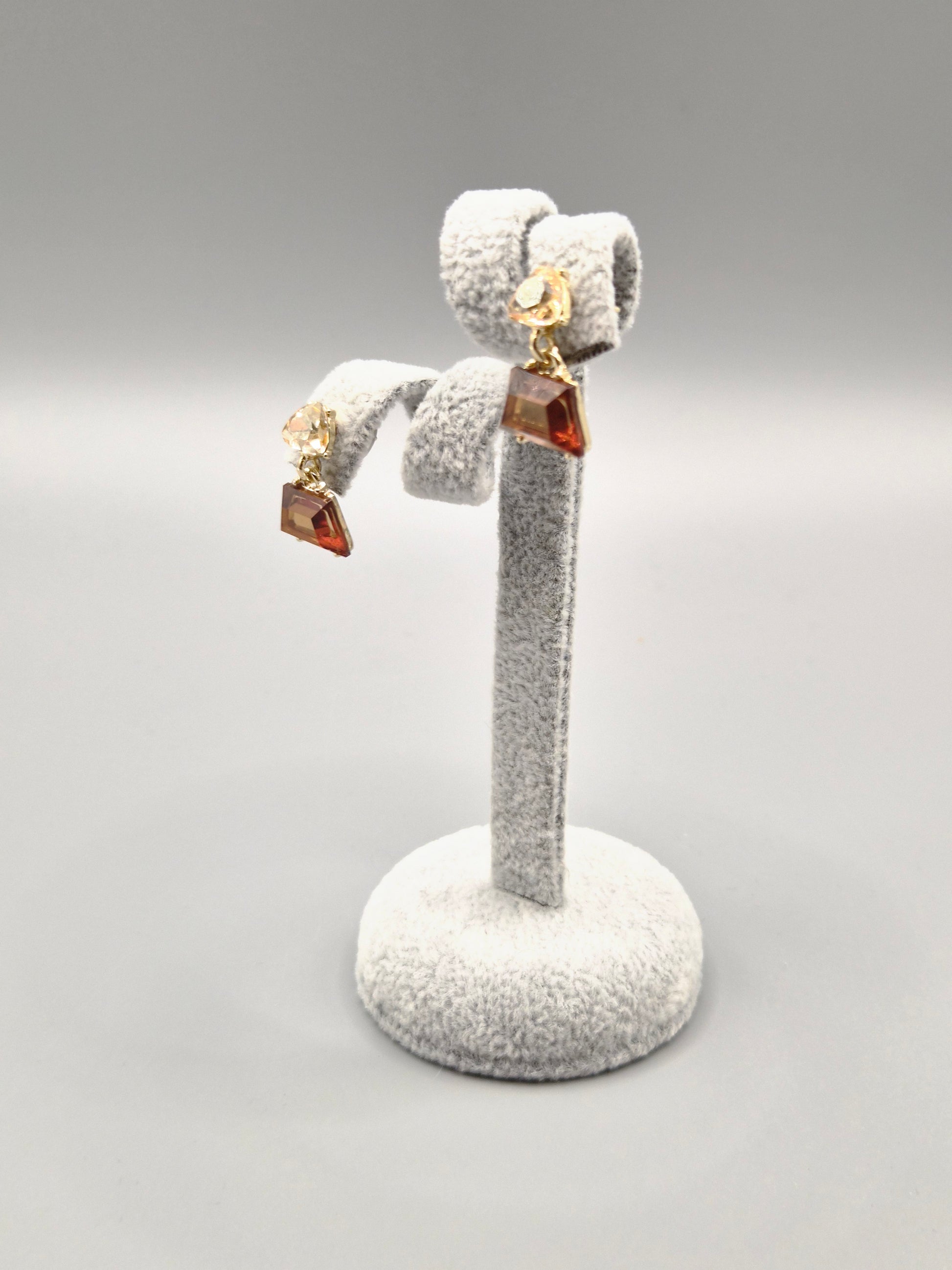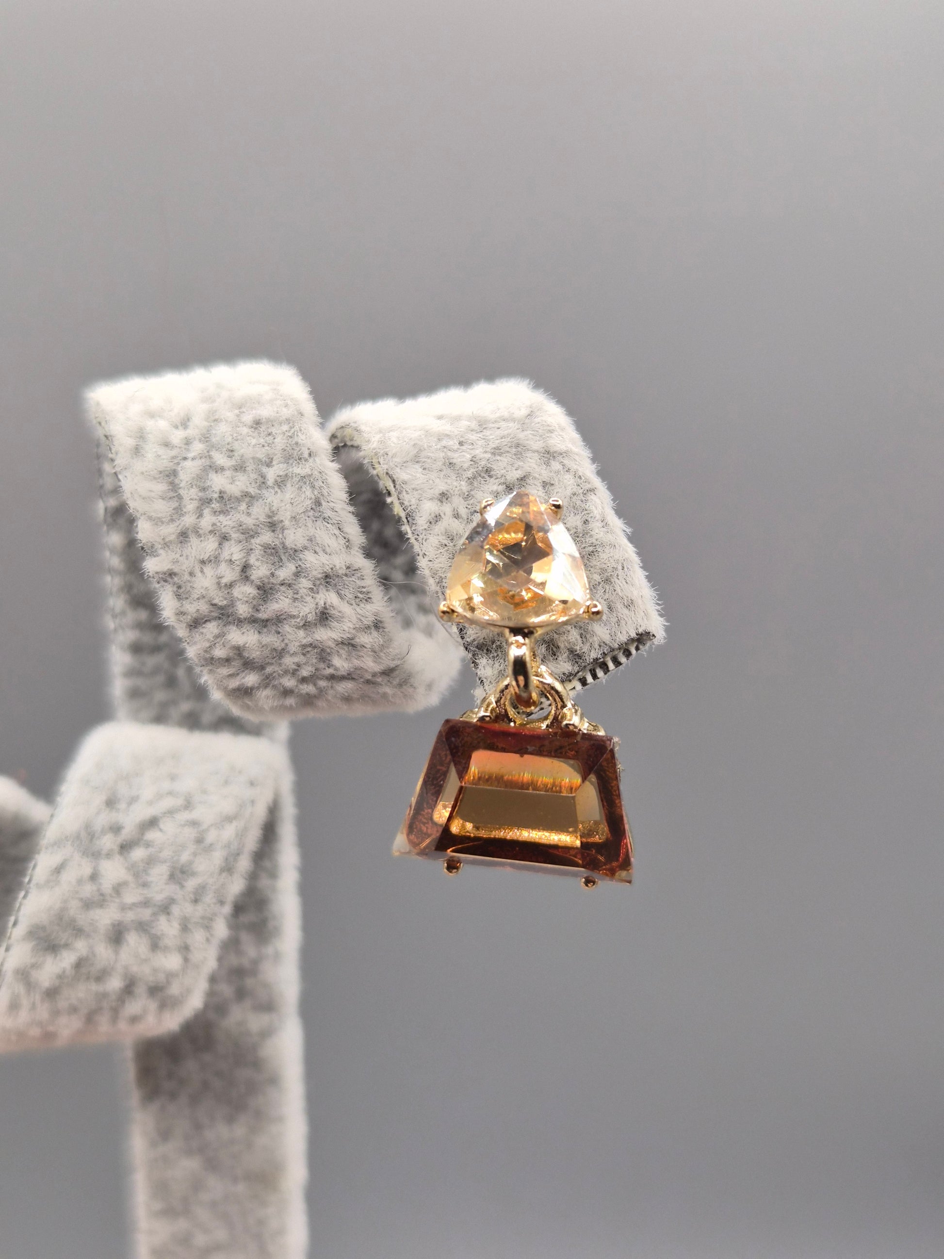 Trilliant Cut Champagne & Bronze Cubic Zirconia Gold Plated Stud Earrings