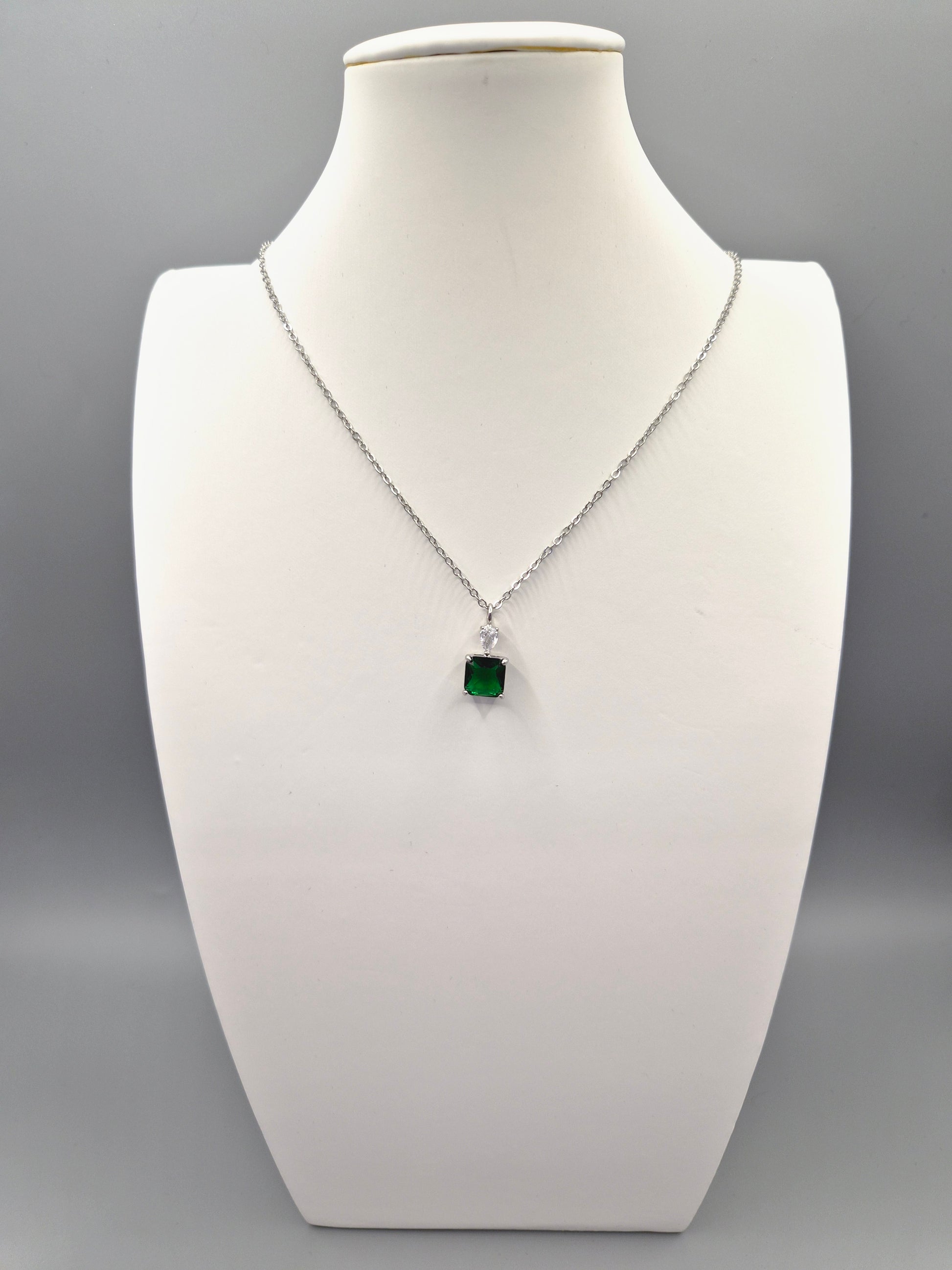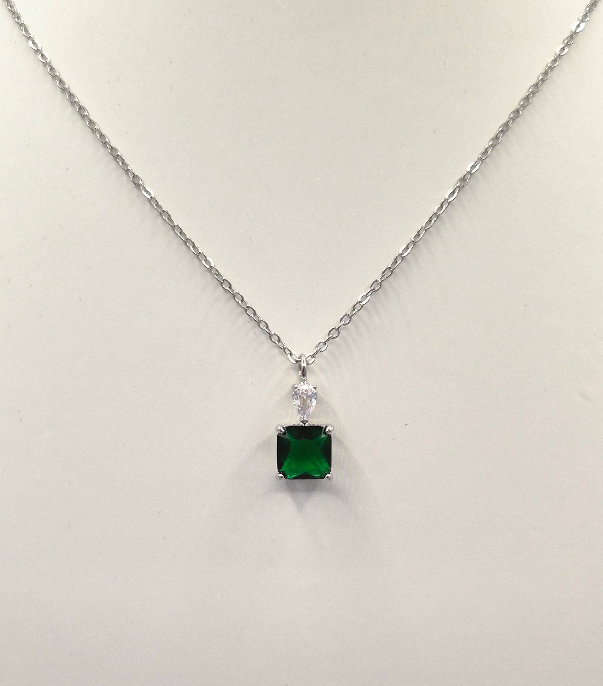 Green Square & Pear Cubic Zirconia Pendant