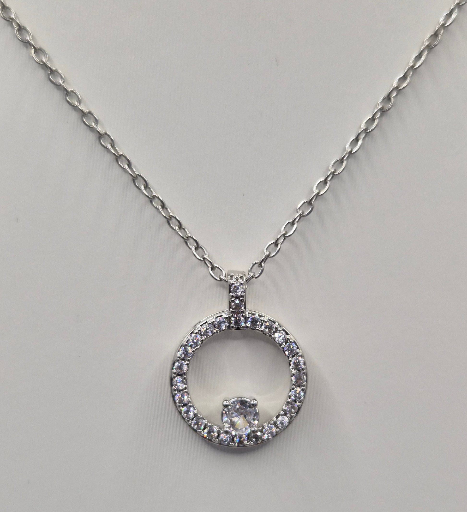 Open Circle with Solitaire Centre Stone Cubic Zirconia Pendant