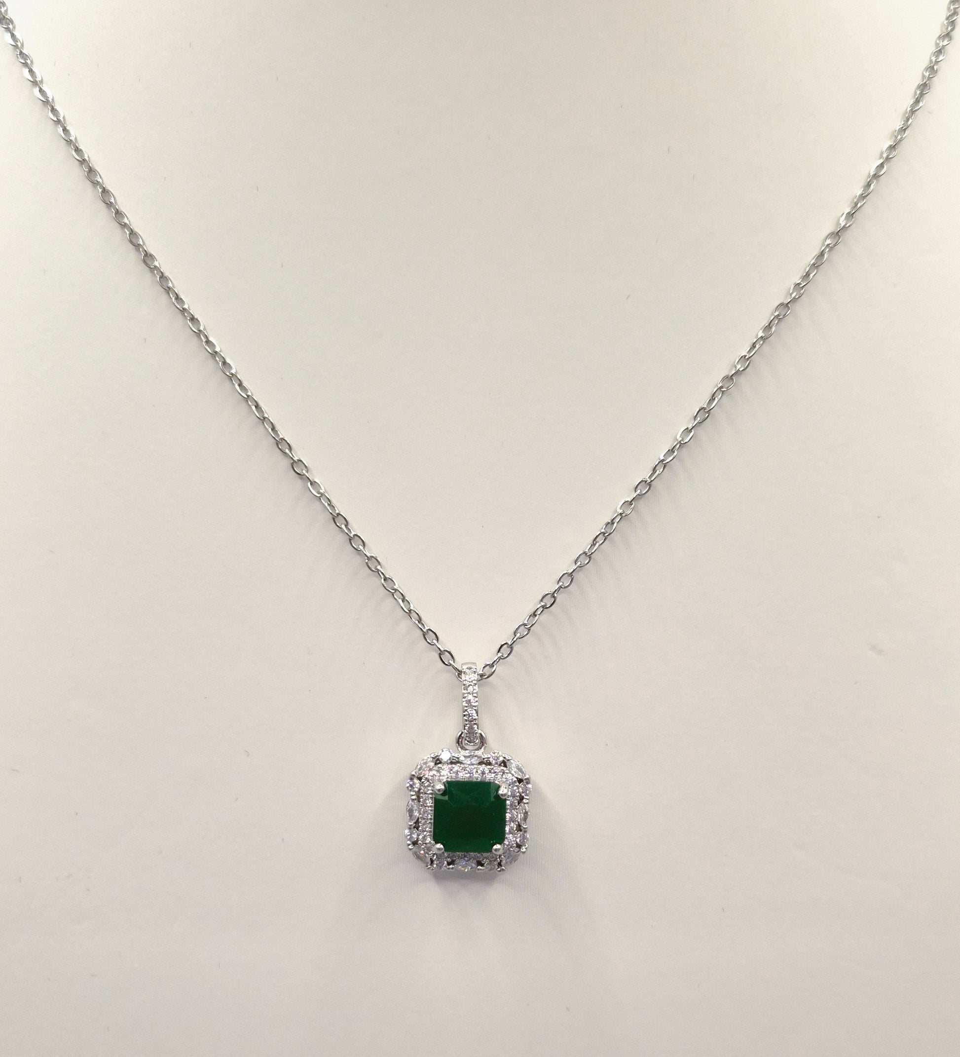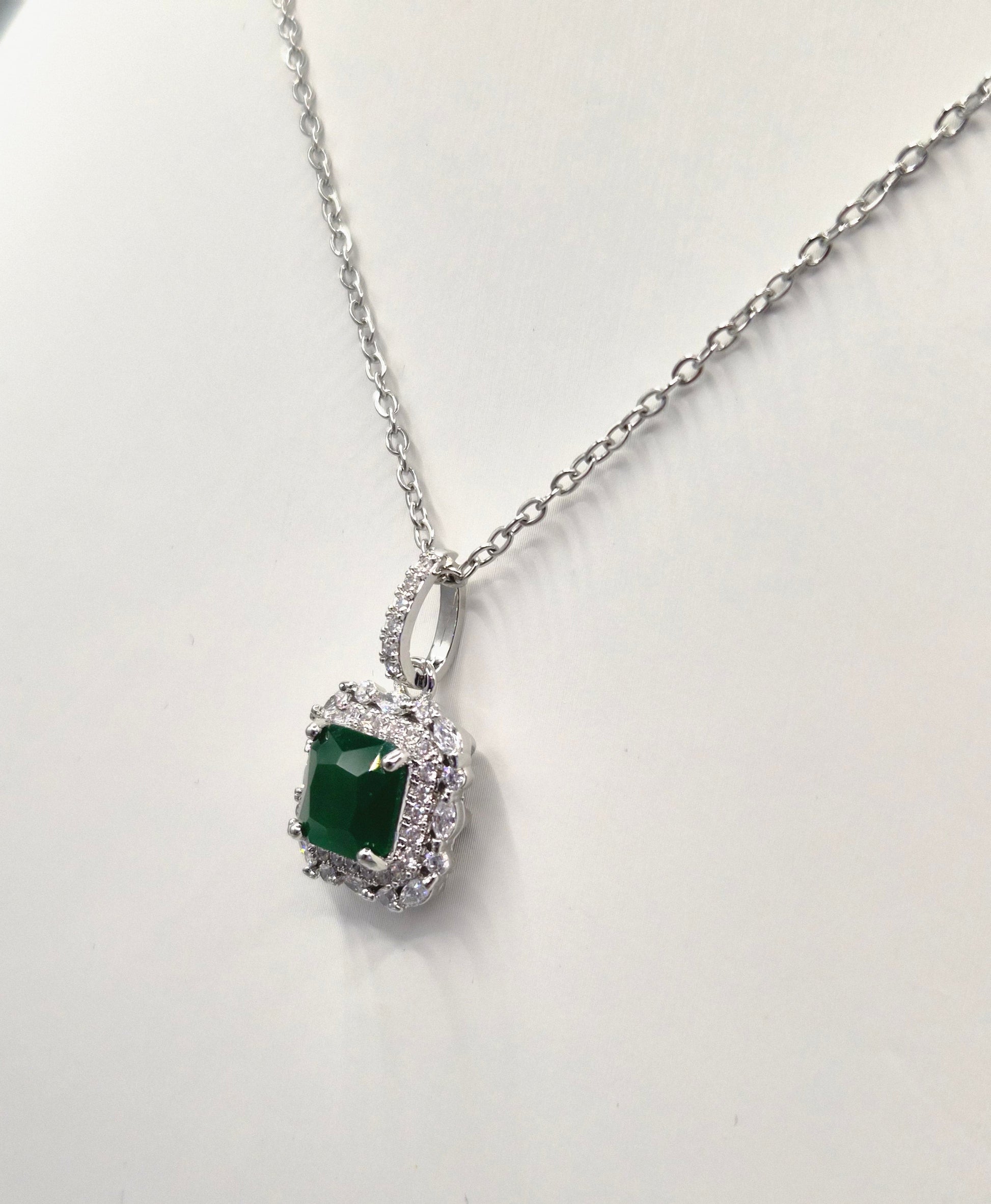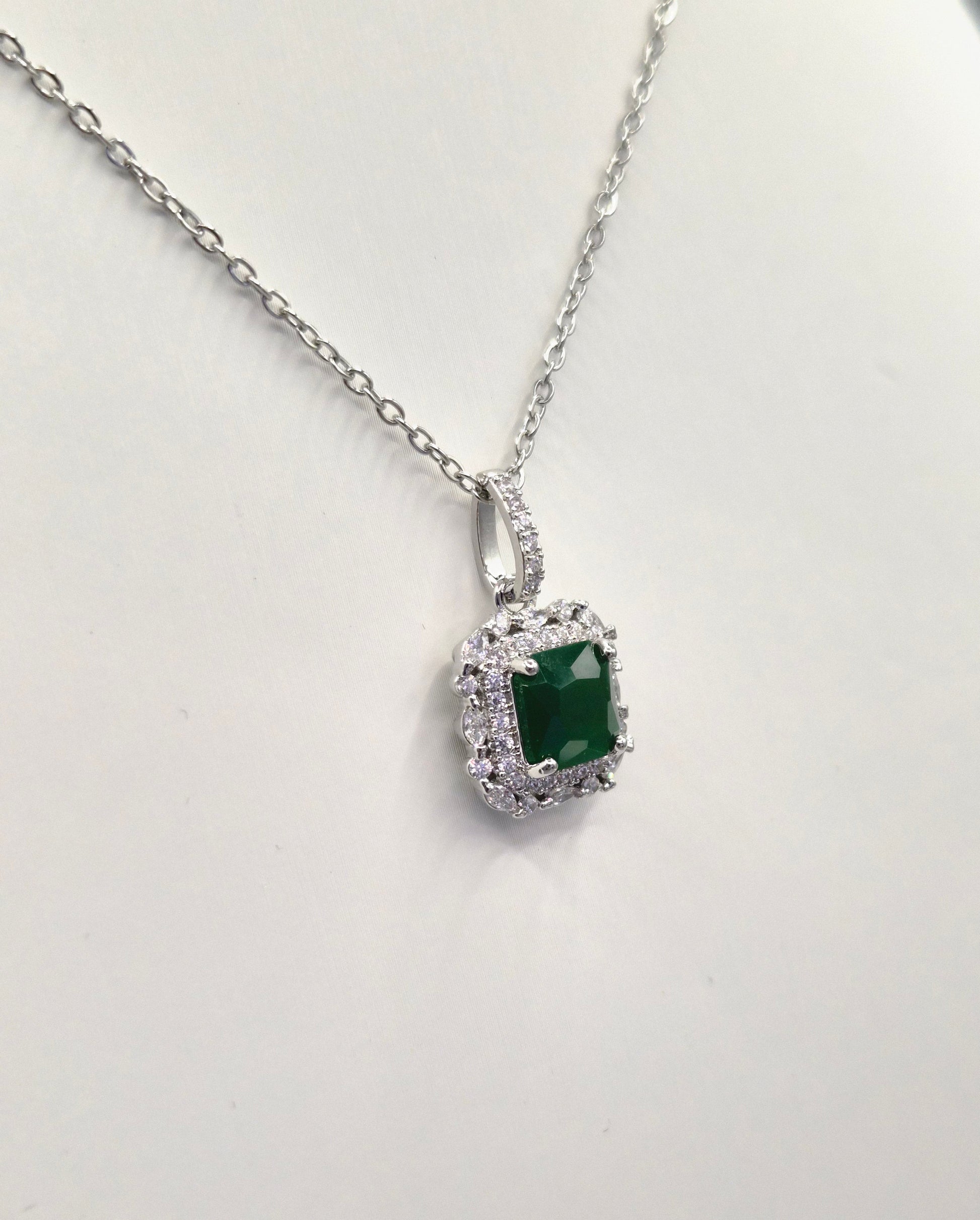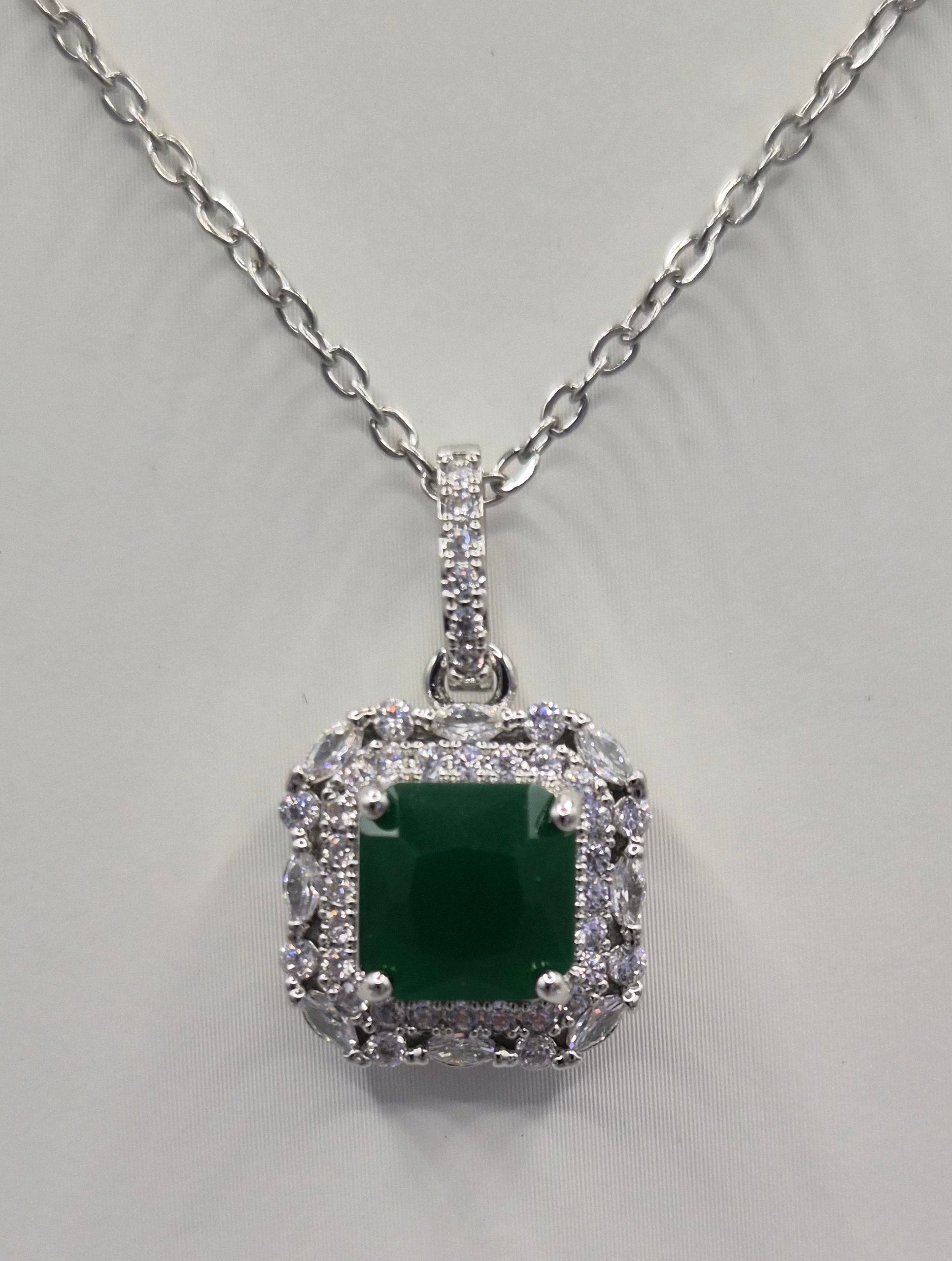Green Square Cubic Marquise & Round Zirconia Set Pendant