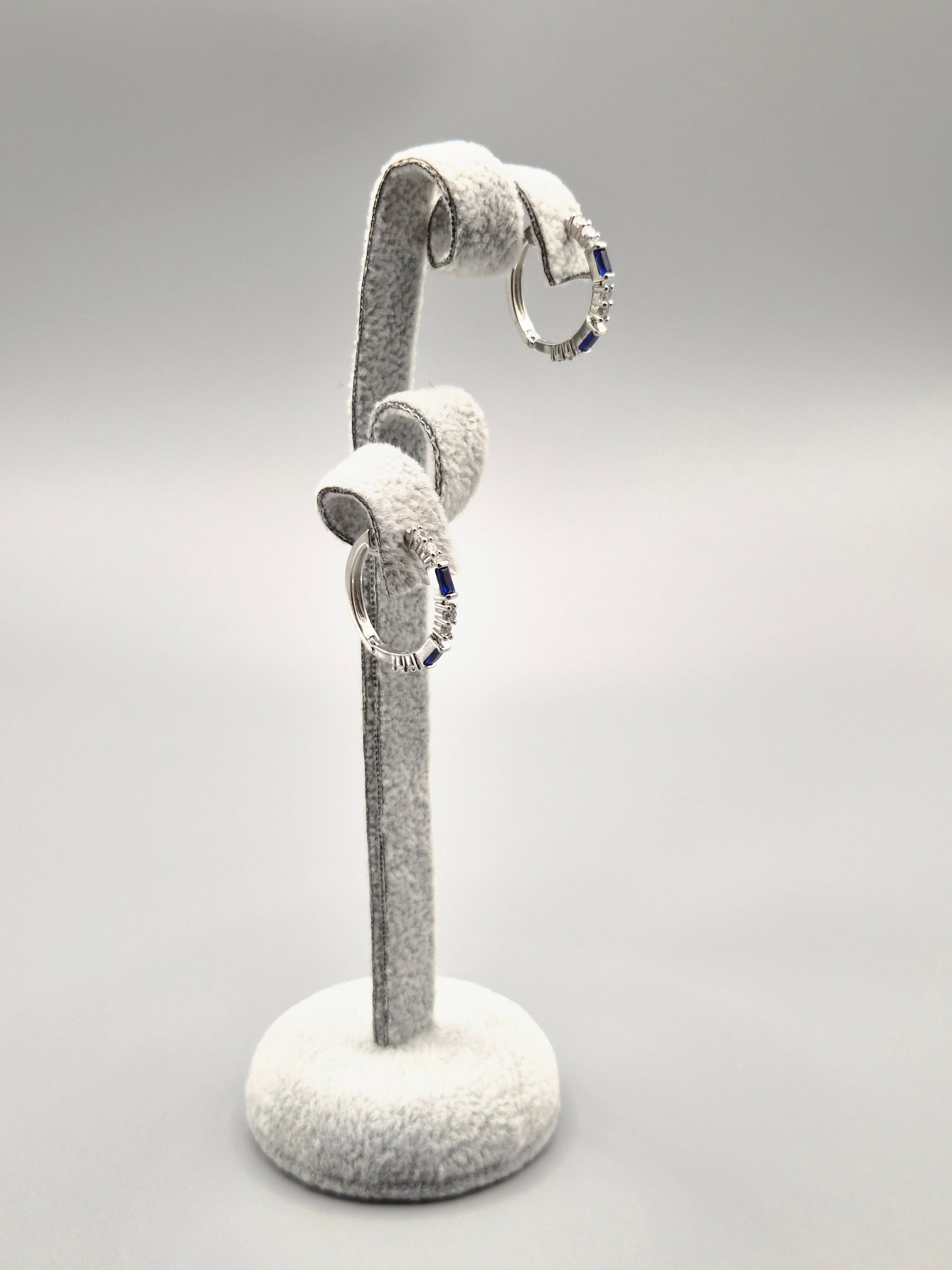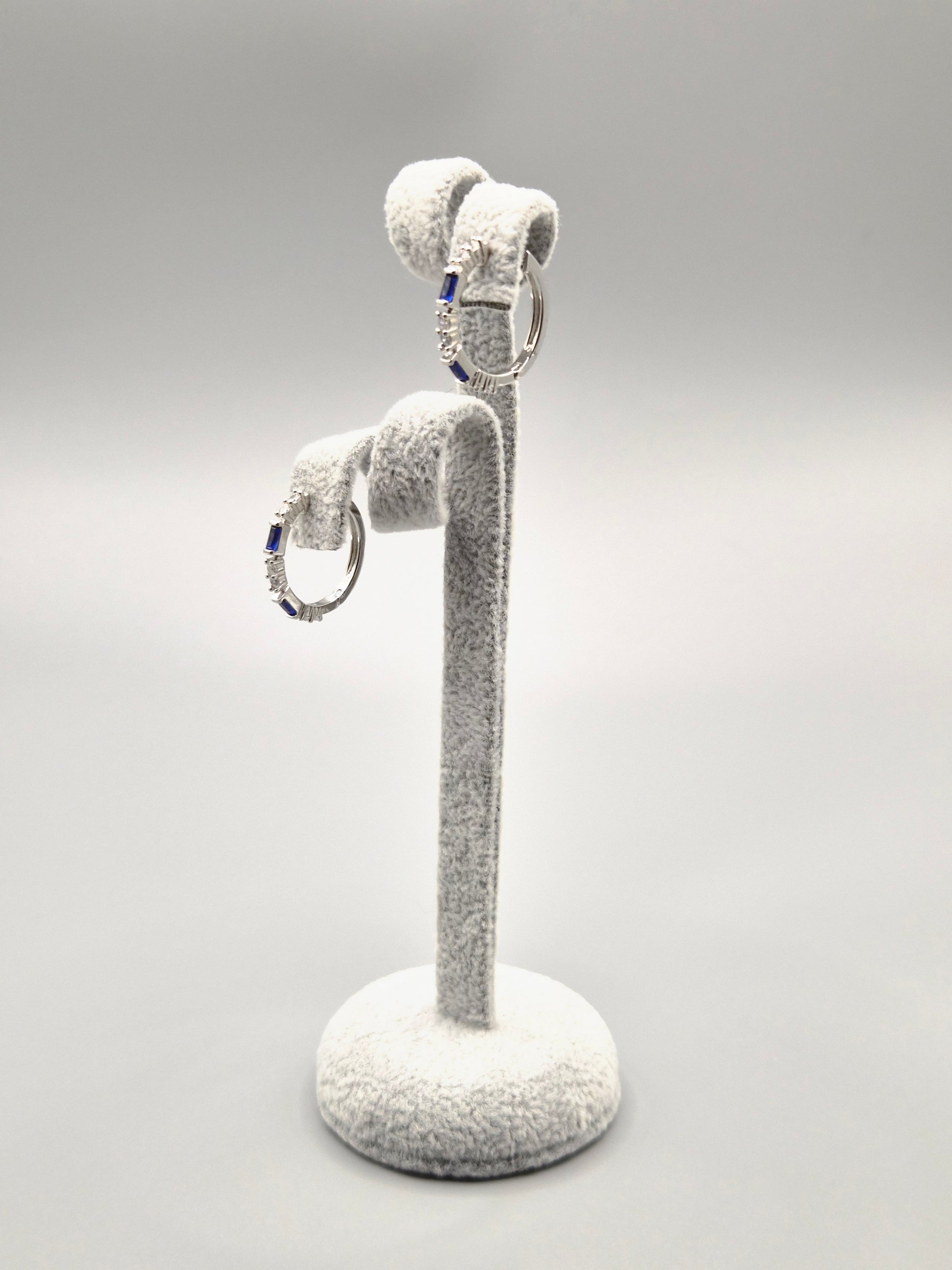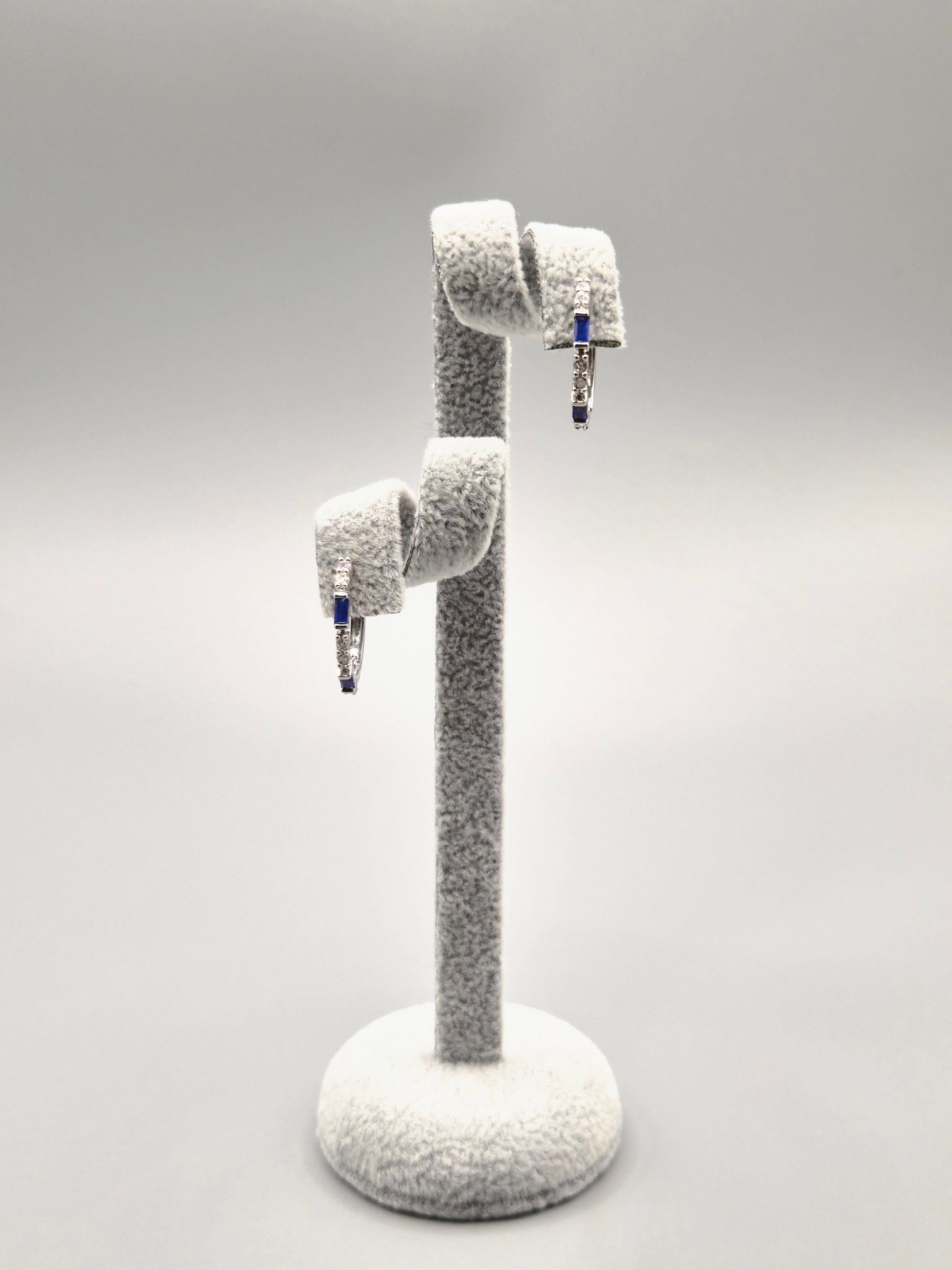 Blue Emerald Cut & Cubic Zirconia Hoop Earrings