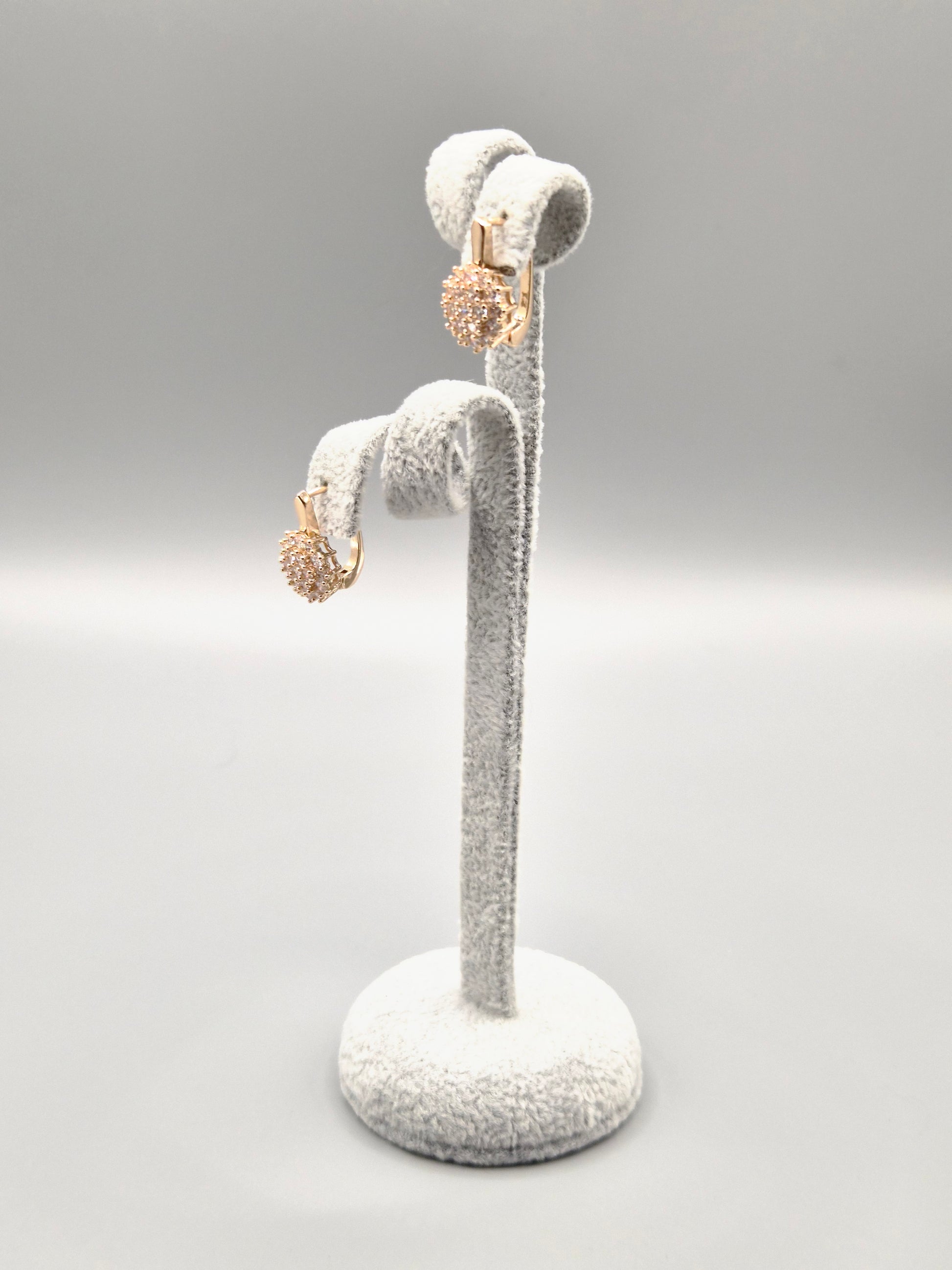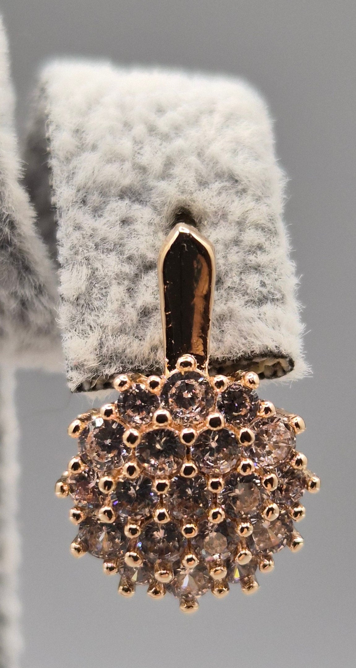 Gold Circle Bead Set Cubic Zirconia Huggie Hoop Earrings