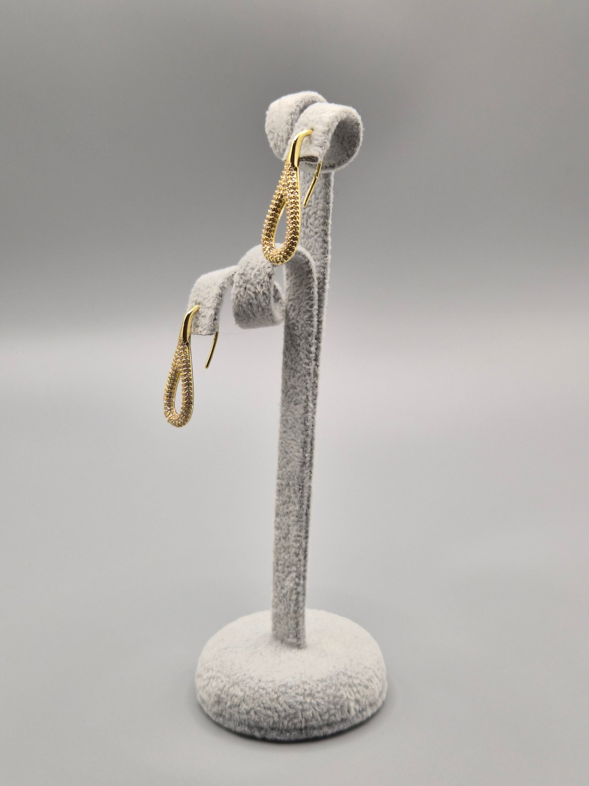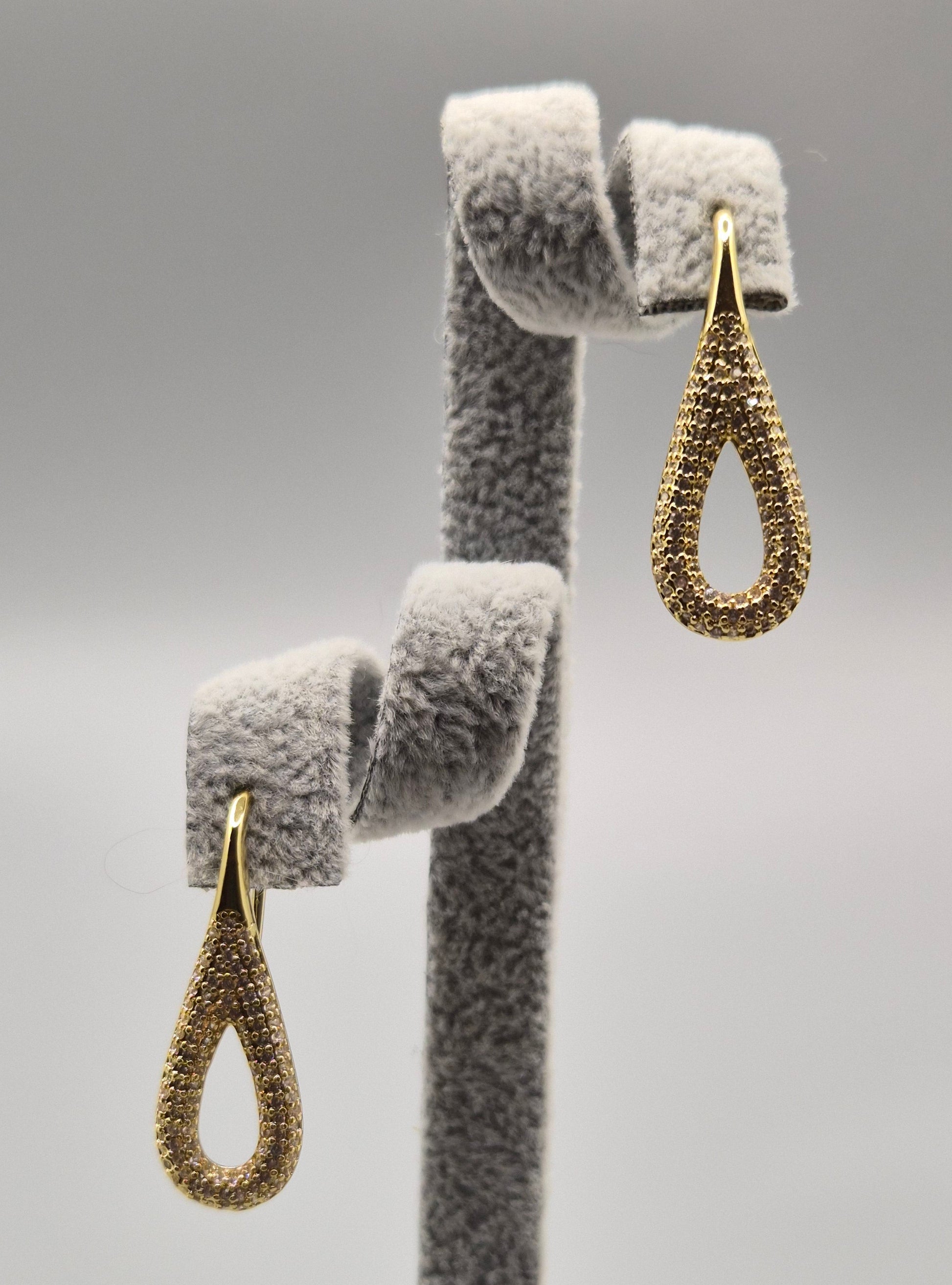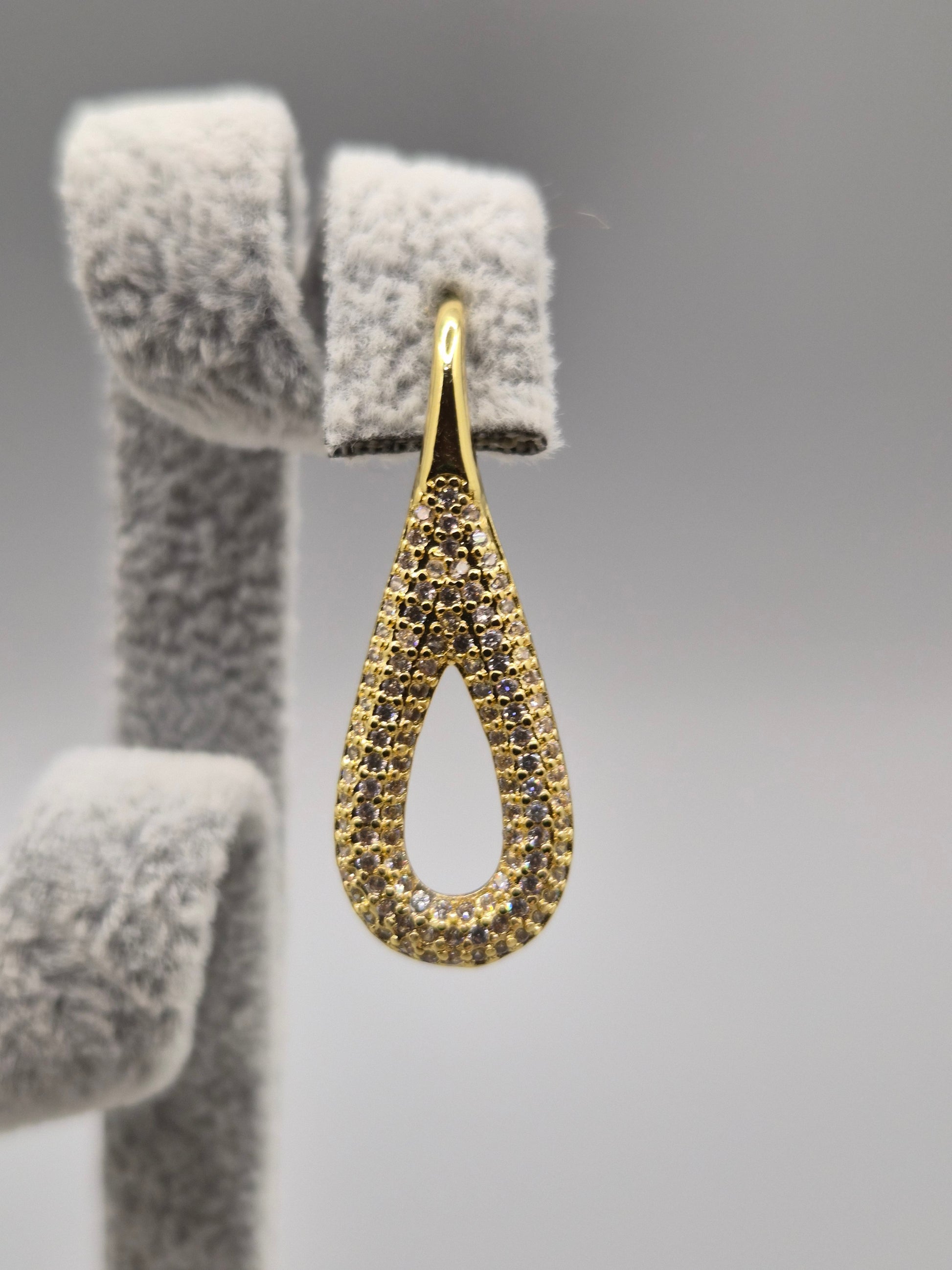 Gold Open Pear Shaped Bead Set Cubic Zirconia Drop Earrings