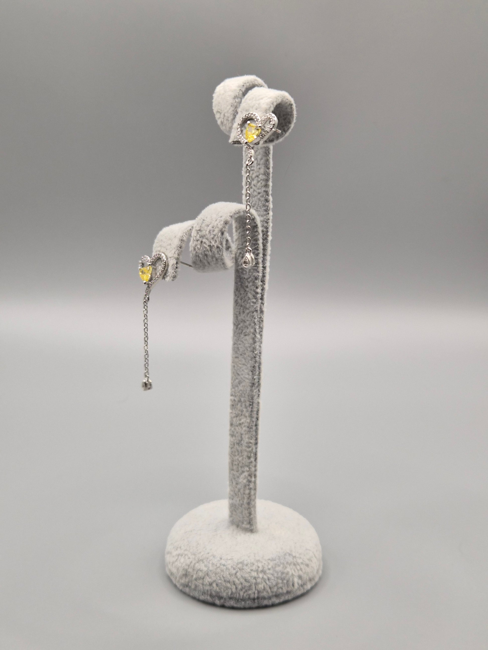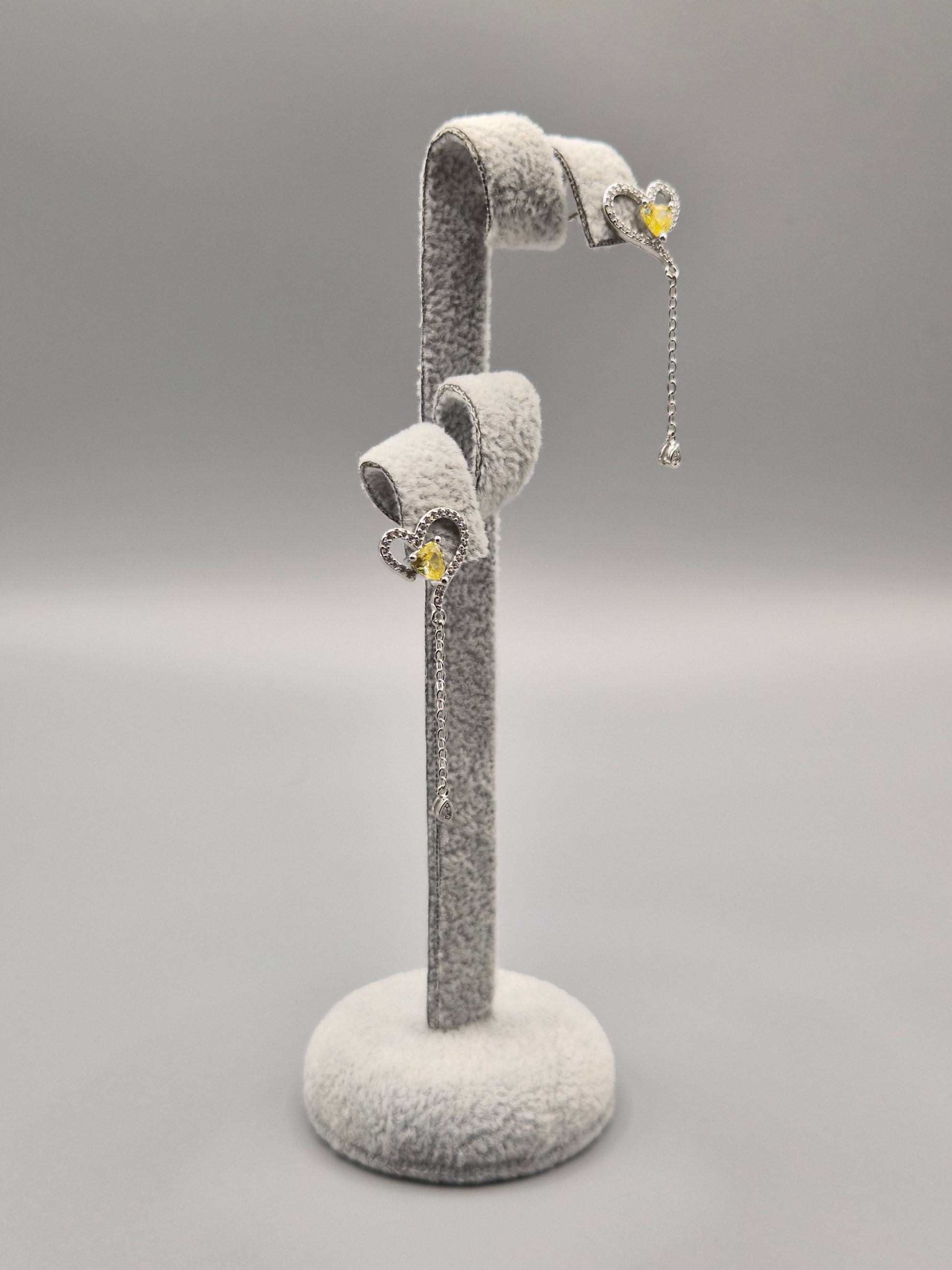 Heart Yellow Citroean & Cubic Zirconia Drop Earrings
