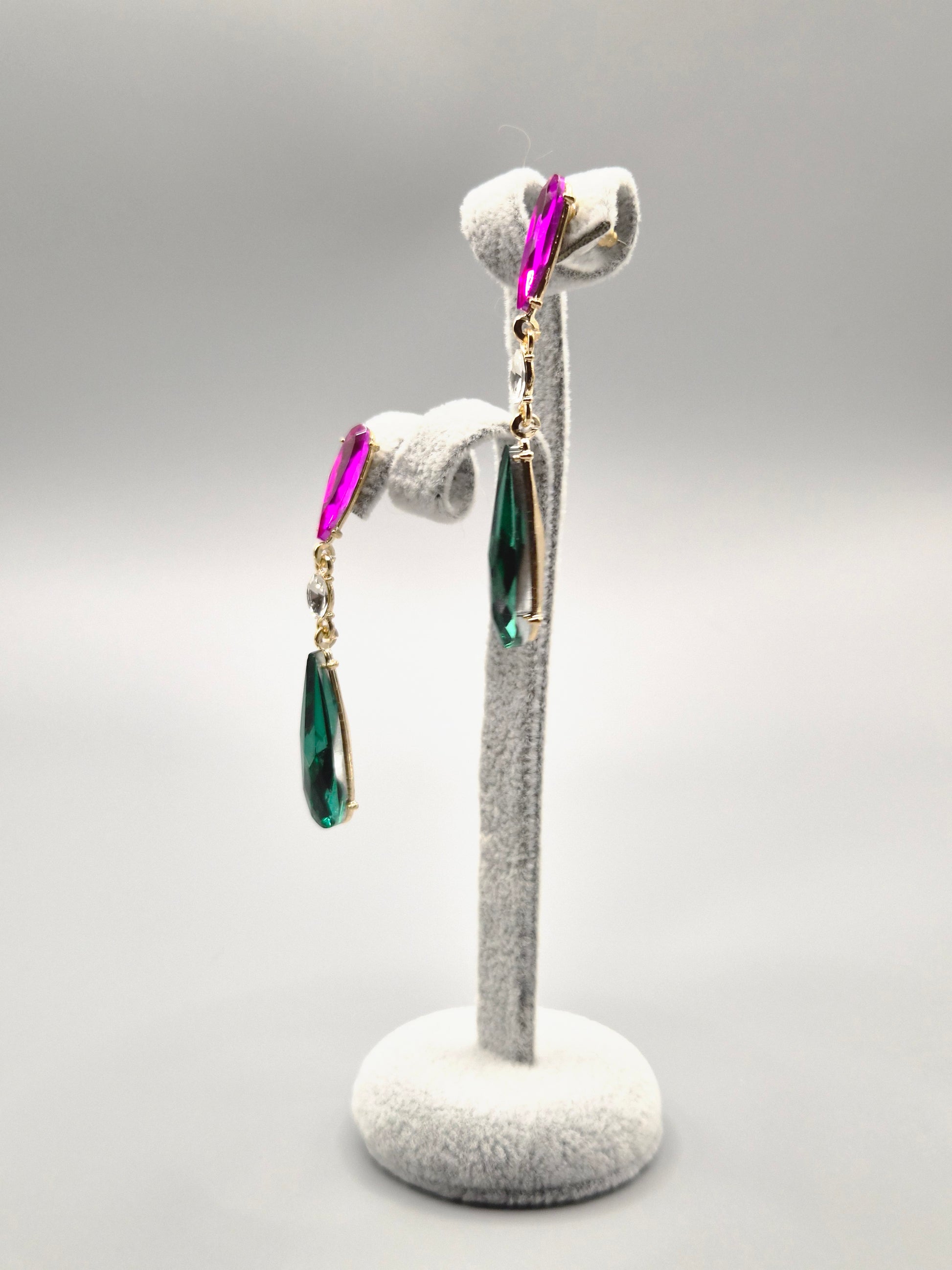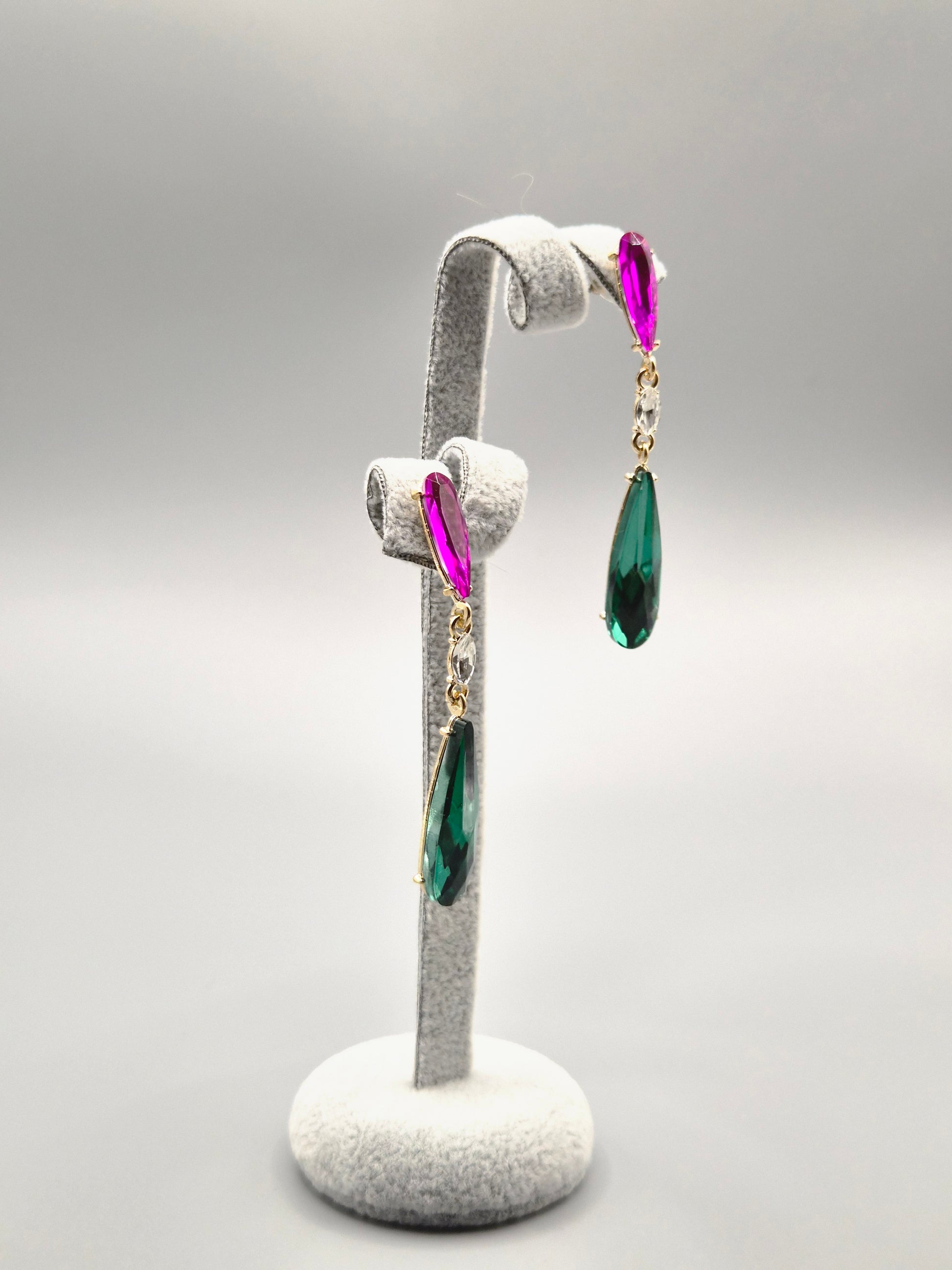 Pear Shaped Pink & Green Gold Set Drop Earrings
