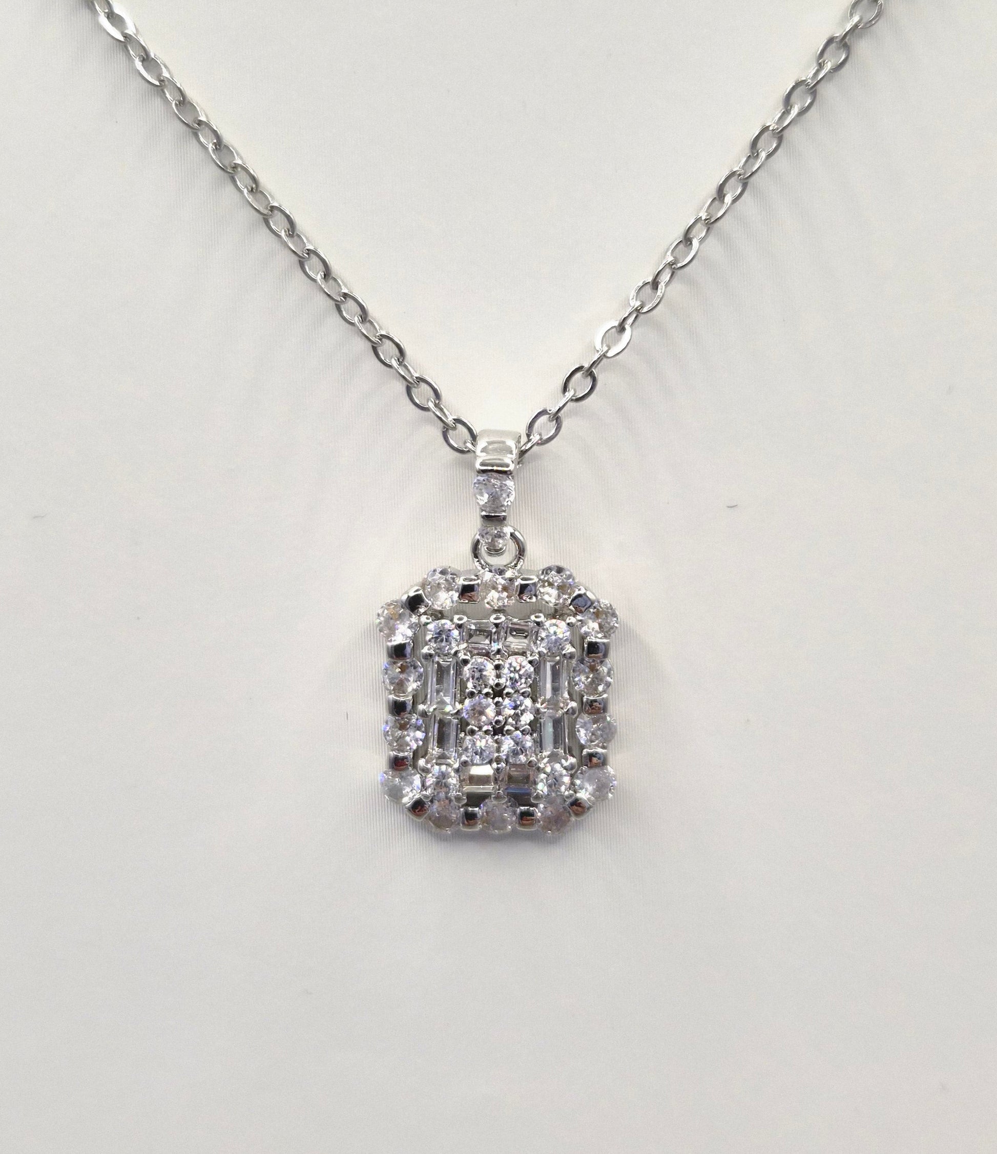 Baguette & Round Cubic Zirconia Pendant