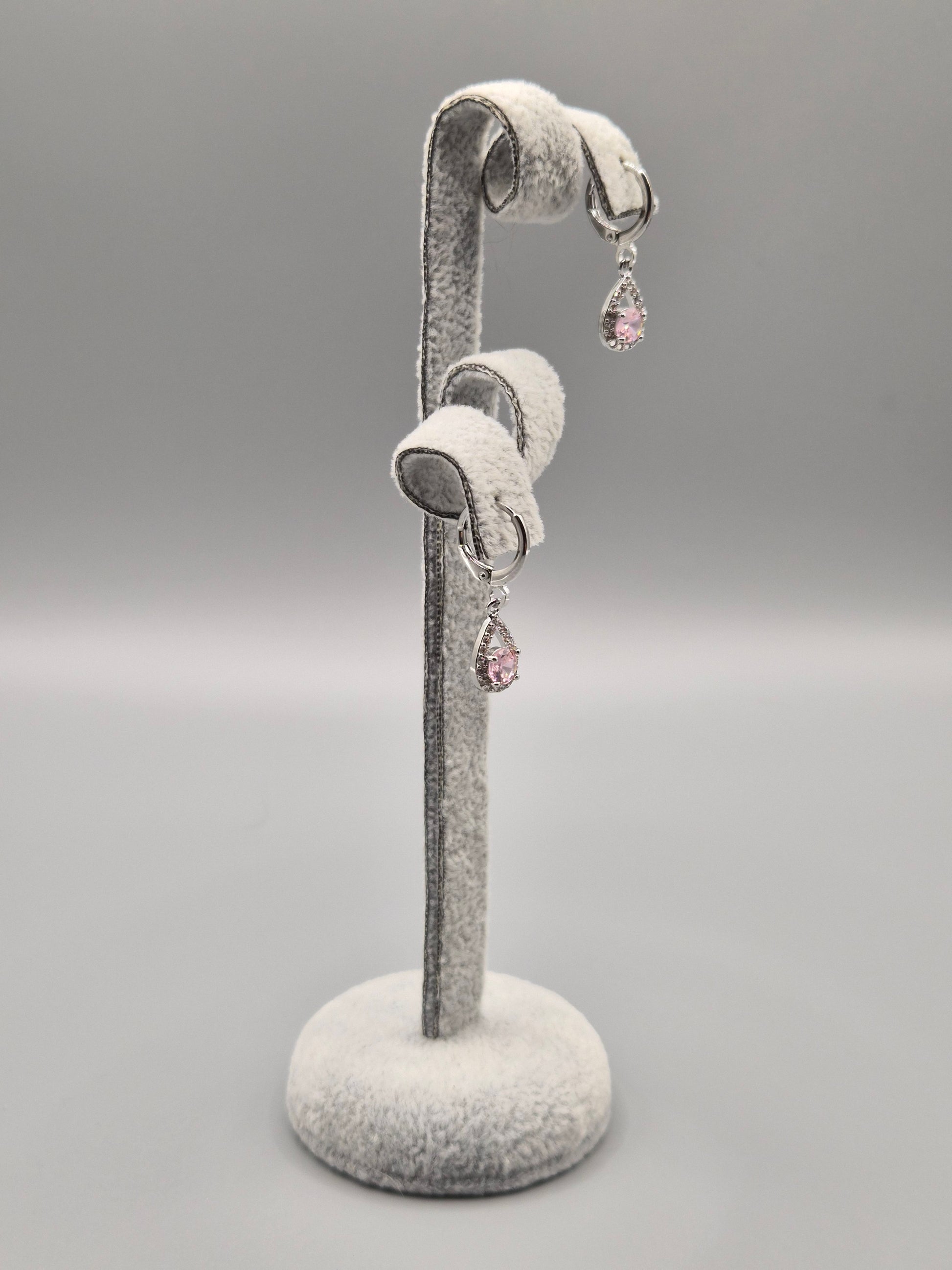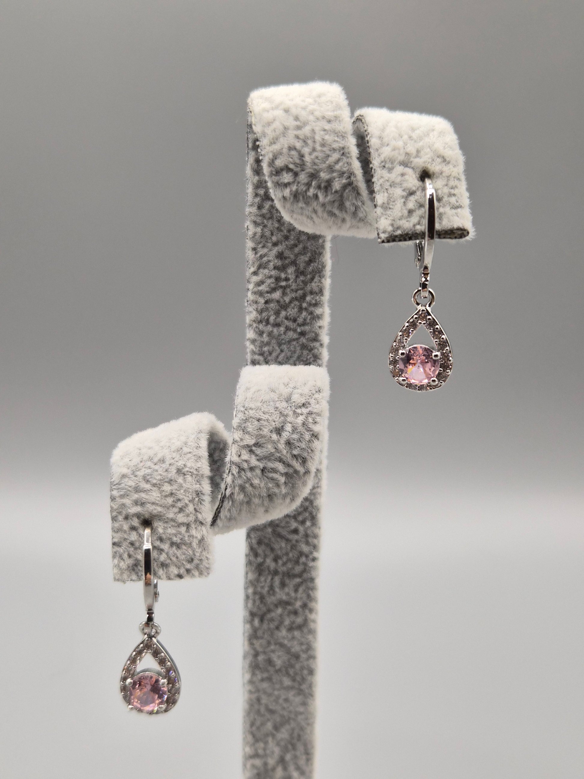 Pink & Cubic Zirconia Pear Shaped Drop Earrings