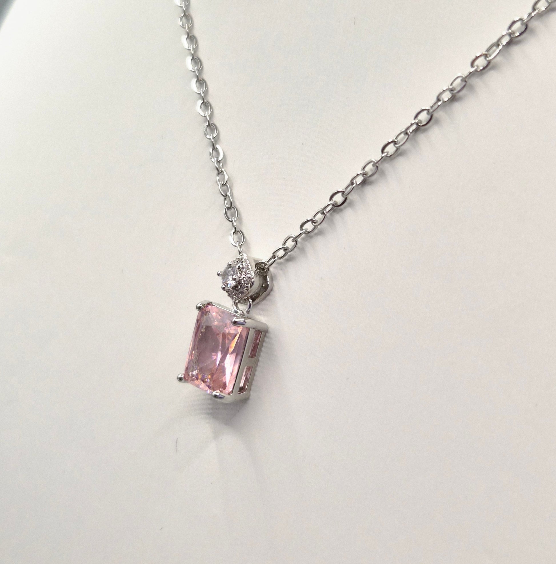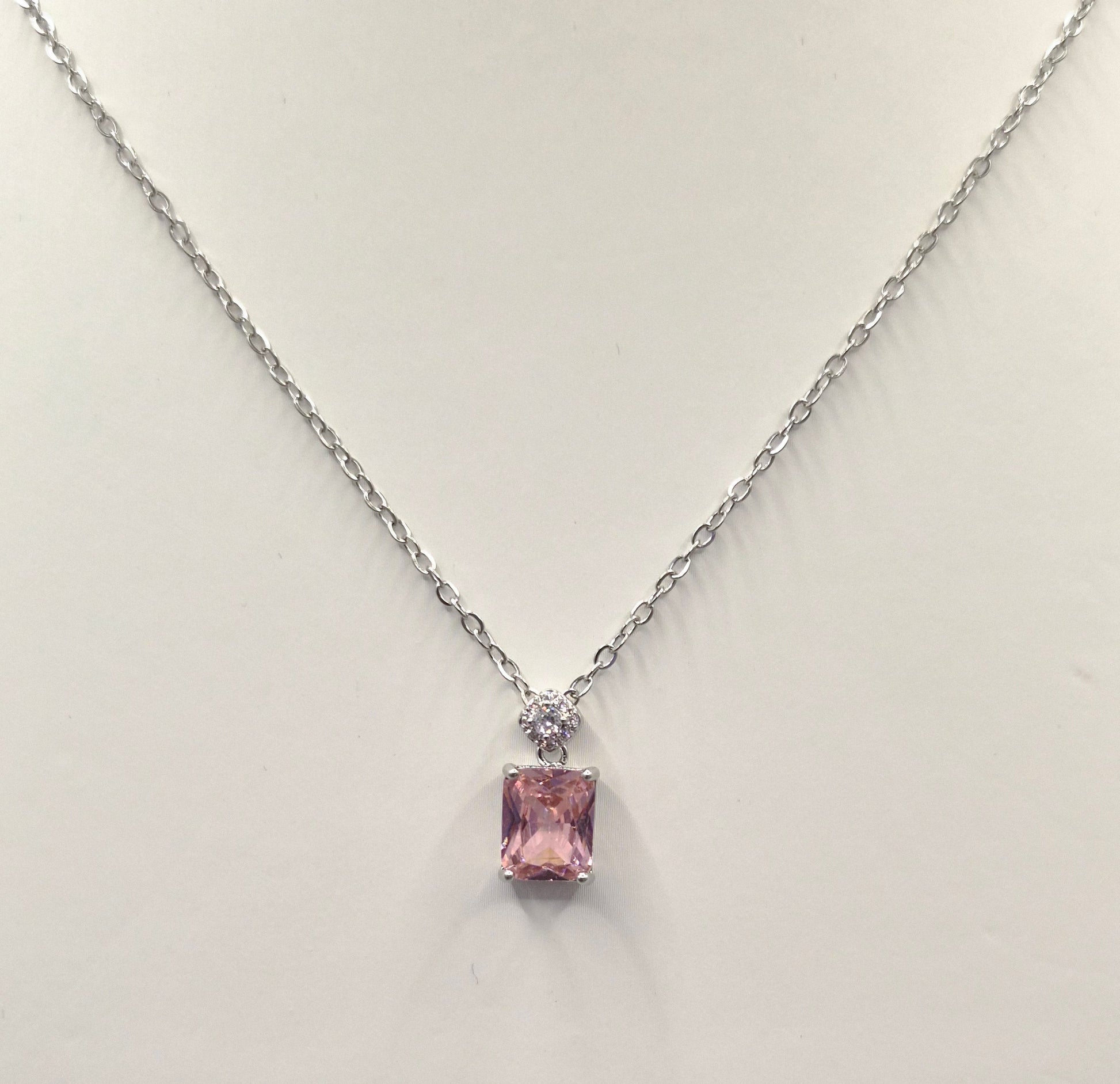 Pink Emerald Cut Centre Stone & Cubic Zirconia Pendant