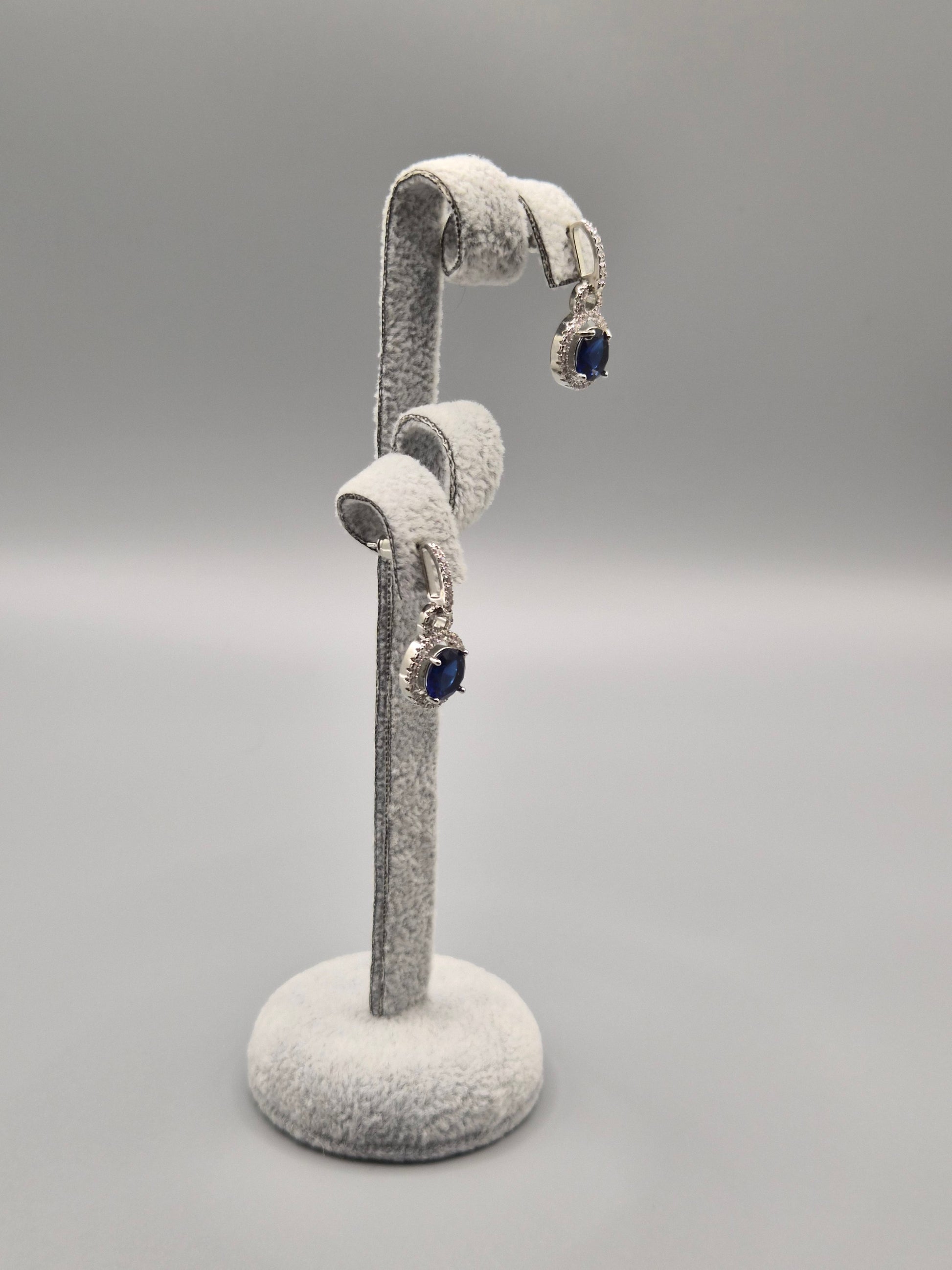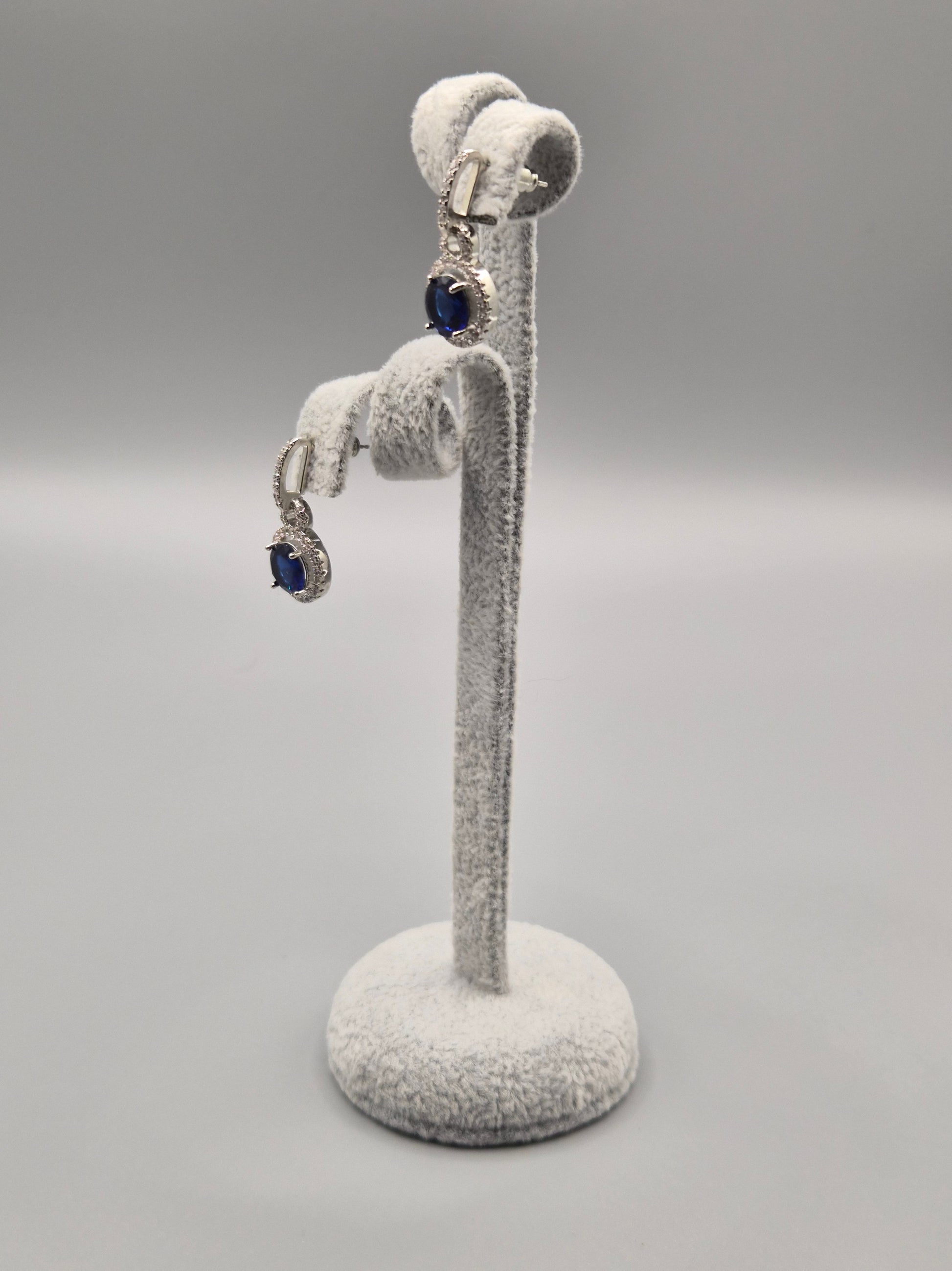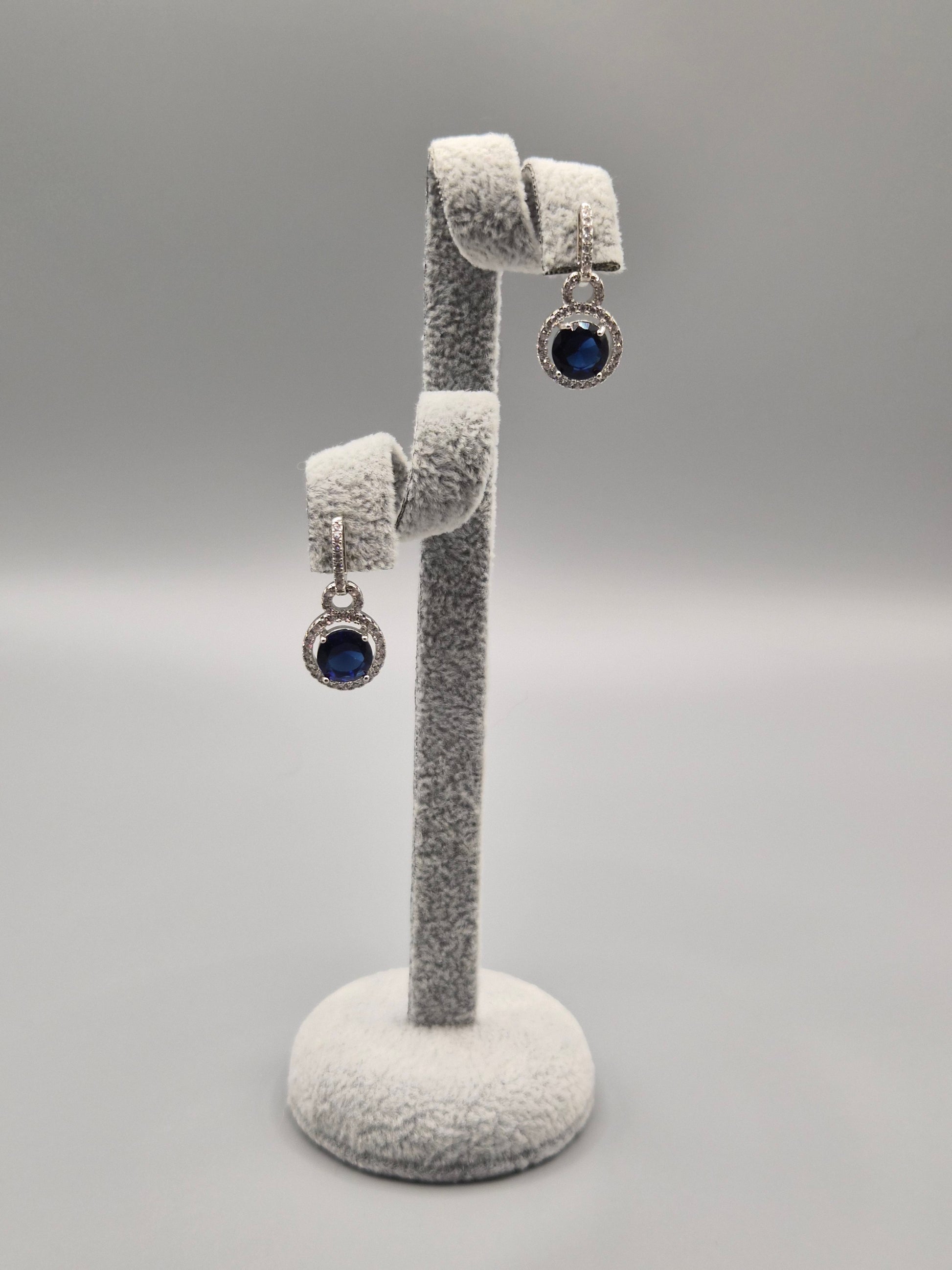 Round Halo Blue & Cubic Zirconia Drop Earrings