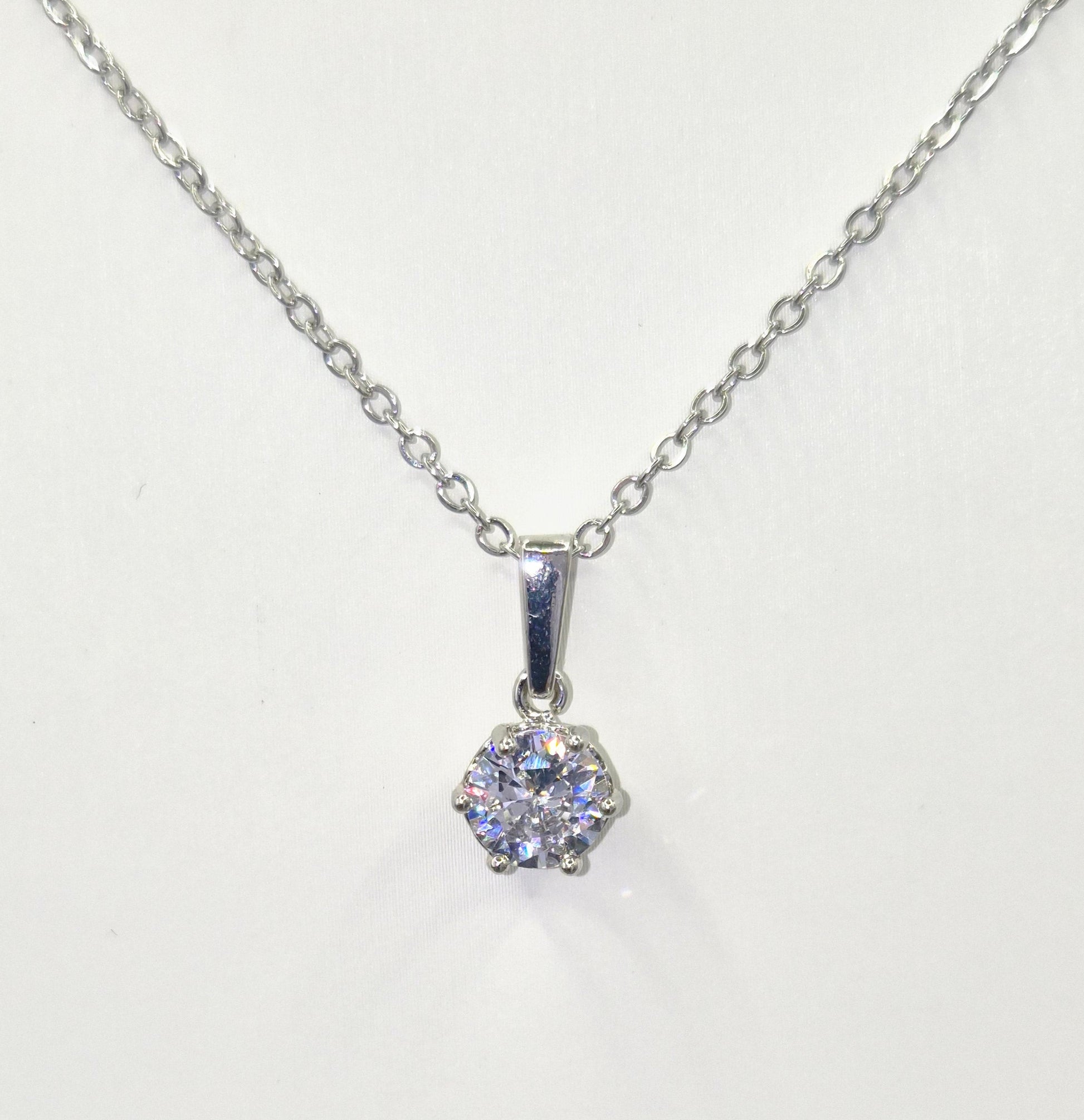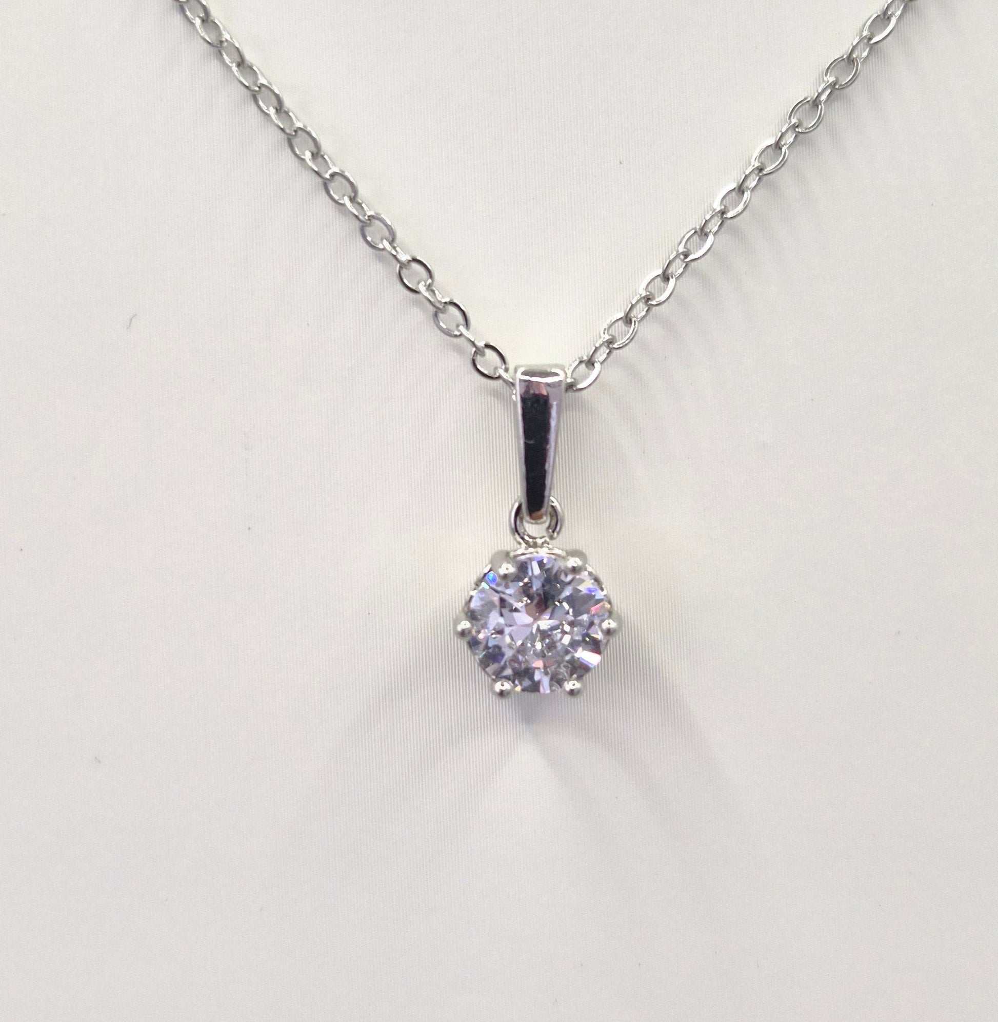 Round Solitaire Claw Set Cubic Zirconia Drop Pendant