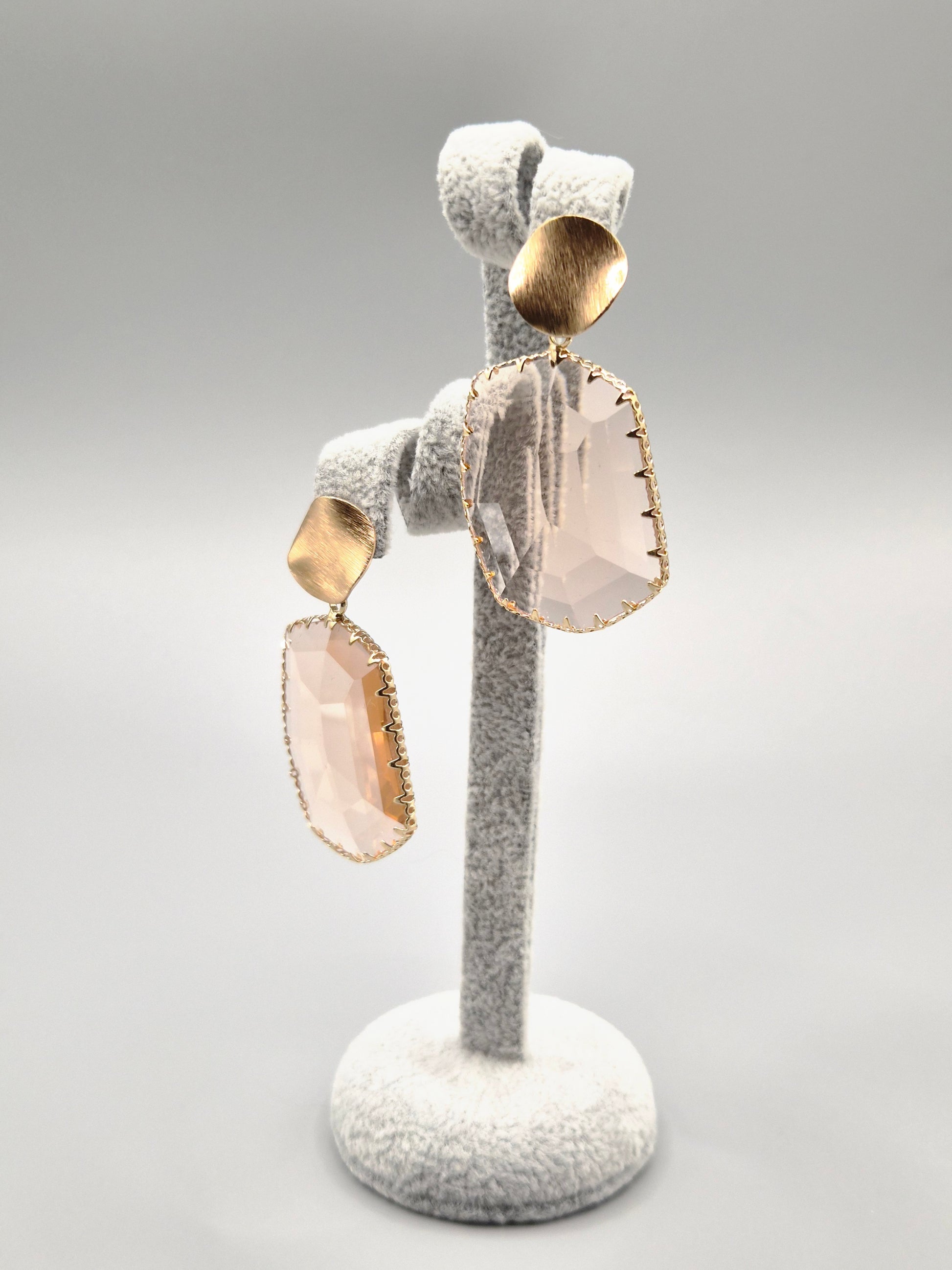 Soft Pink Faceted Glass Gold Set Drop Earrings