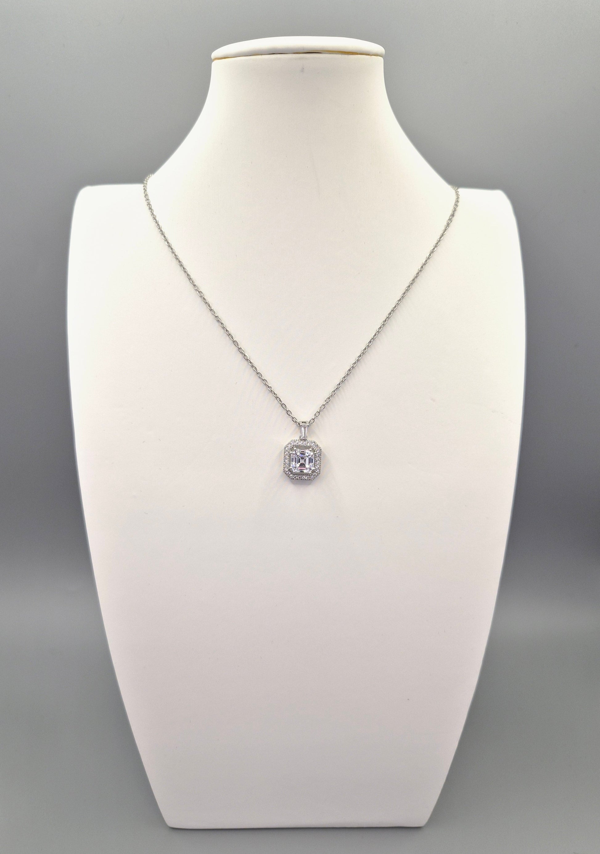 Square Halo Cubic Zirconia Drop Pendant