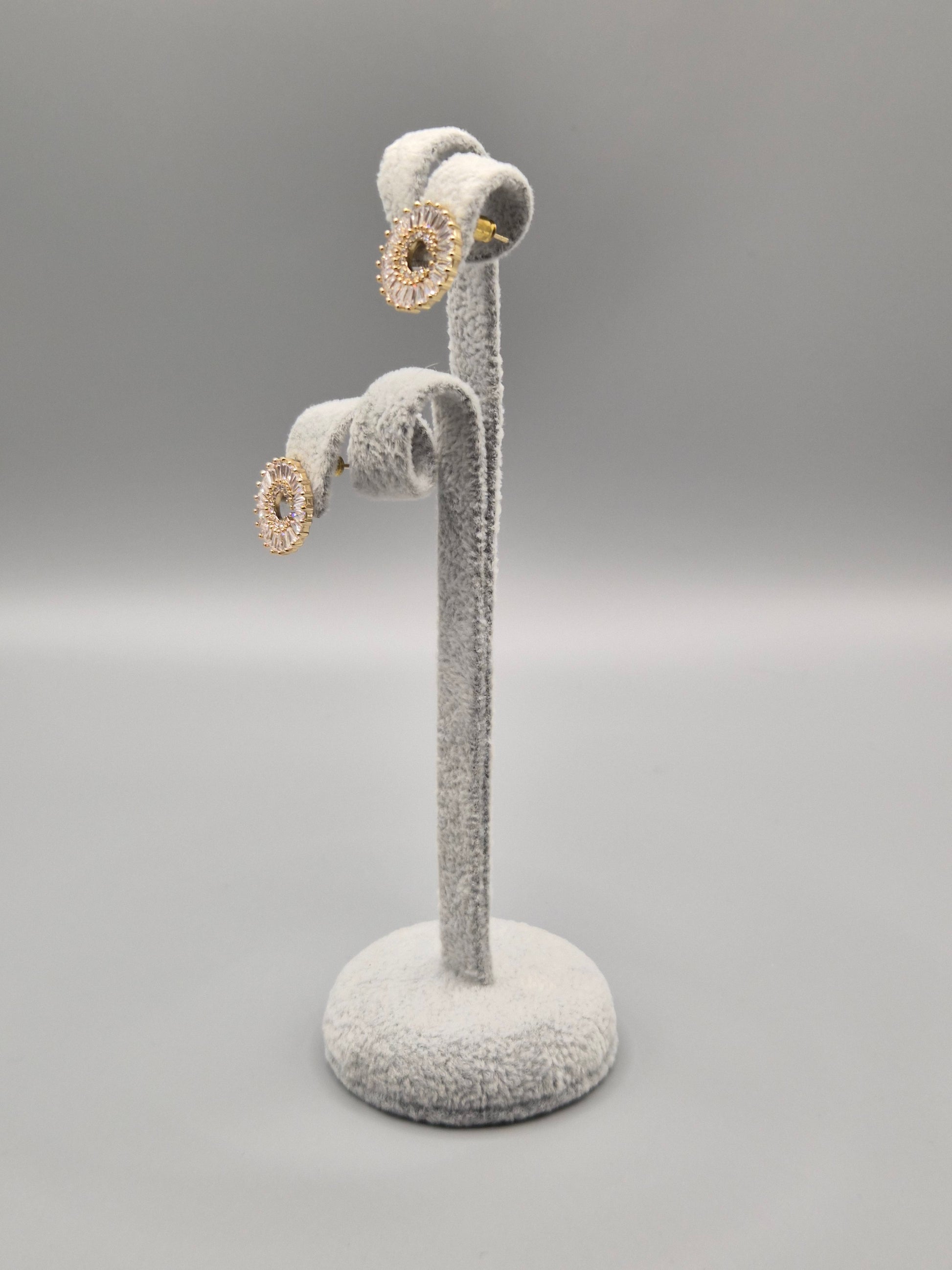Tapered Baguette & Round Cubic Zirconia Circle C Stud Earrings